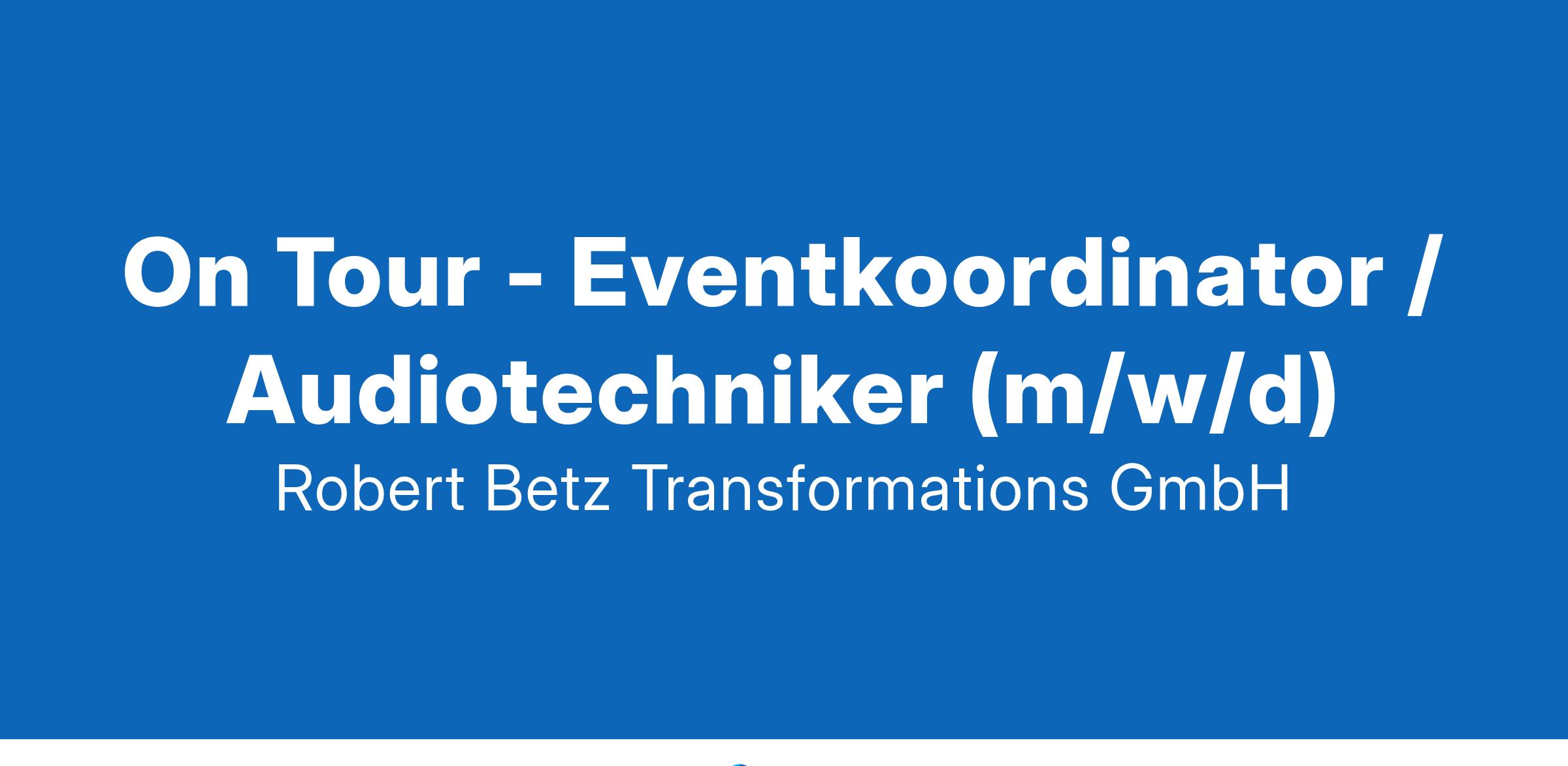 On Tour-Eventmanager/Tontechniker (m/w/d)Dem Leben eine neue Richtung geben. Dafür steht die Robert Betz Transformations GmbH. Mit Vorträgen, Seminaren, Urlaubsseminaren und Ausbildungen sowie einem breiten Portfolio an Verlagsprodukten, unterstützen wir unsere Kunden dabei, ihr Leben zu verändern, in Richtung Freude, Klarheit, Freiheit, Gesundheit und Erfolg. Für die Begleitung unserer Vortrags- und Seminarveranstaltungen suchen wir ab sofort einen On Tour-Eventmanager/Tontechniker (m/w/d)Deine Aufgabenbereiche: Begleitung unserer (Präsenz-) Vortrags- und Seminarveranstaltungen mit Robert Betz an verschiedenen Orten in Deutschland, Österreich und der Schweiz (ca. 25 Vorträge, ca. 12 Seminare pro Jahr, s. robert-betz.com) Verkauf von Büchern und CDs bei den Veranstaltungen inkl. Auf- und Abbau von Verkaufstischen und Kassenabrechnung Einlassmanagement Auf- und Abbau von Veranstaltungstontechnik Transport und Disposition von Verkaufsartikeln und Veranstaltungstechnik (im Transporter) ggfs. Unterstützung bei der Vortragplanung und Hotelbuchung Das bringst du mit: Abgeschlossene Ausbildung oder Studium im Bereich Veranstaltungsmanagement oder eine vergleichbare Qualifikation Erste Berufserfahrung im Eventmanagement inkl. Veranstaltungstontechnik Fähigkeit zum Verkauf und freundliche Kundeninteraktion Hohe Zuverlässigkeit und Fähigkeit zu selbstständigem, eigenverantwortlichem Arbeiten Führerschein Klasse B oder BE, sichere Fahrweise und Reisefreudigkeit, sehr gute Sprachkenntnisse in Deutsch Das bieten wir: Vielfältiger Einsatz an unterschiedlichen Veranstaltungsorten Möglichkeit Events hautnah zu erleben und direkt Verantwortung zu übernehmen Übernachtung in ansprechenden Hotels während der Tour (teilweise inkl. Vollverpflegung bei Seminaren) Die zu begleitenden Veranstaltungen mit Robert Betz findest du unter robert-betz.com (davon nur Region DACH, ohne Online-Veranstaltungen). Die Arbeitszeit richtet sich nach den geplanten Veranstaltungen und kann je nach Art und Umfang der Veranstaltungen variieren. Im Jahresdurchschnitt beträgt die wöchentliche Arbeitszeit ca. 18-25 Std.KontaktHaben wir dein Interesse geweckt? Dann freuen wir uns auf deine aussagekräftige Online-Bewerbung unter Angabe des frühesten Eintrittstermins sowie deiner Gehaltsvorstellung an: Robert Betz Transformations GmbH z.Hd. Benjamin Frost Adolf-Kolping-Str. 16 80336 Münchenbewerbungen@robert-betz.de Jetzt bewerben