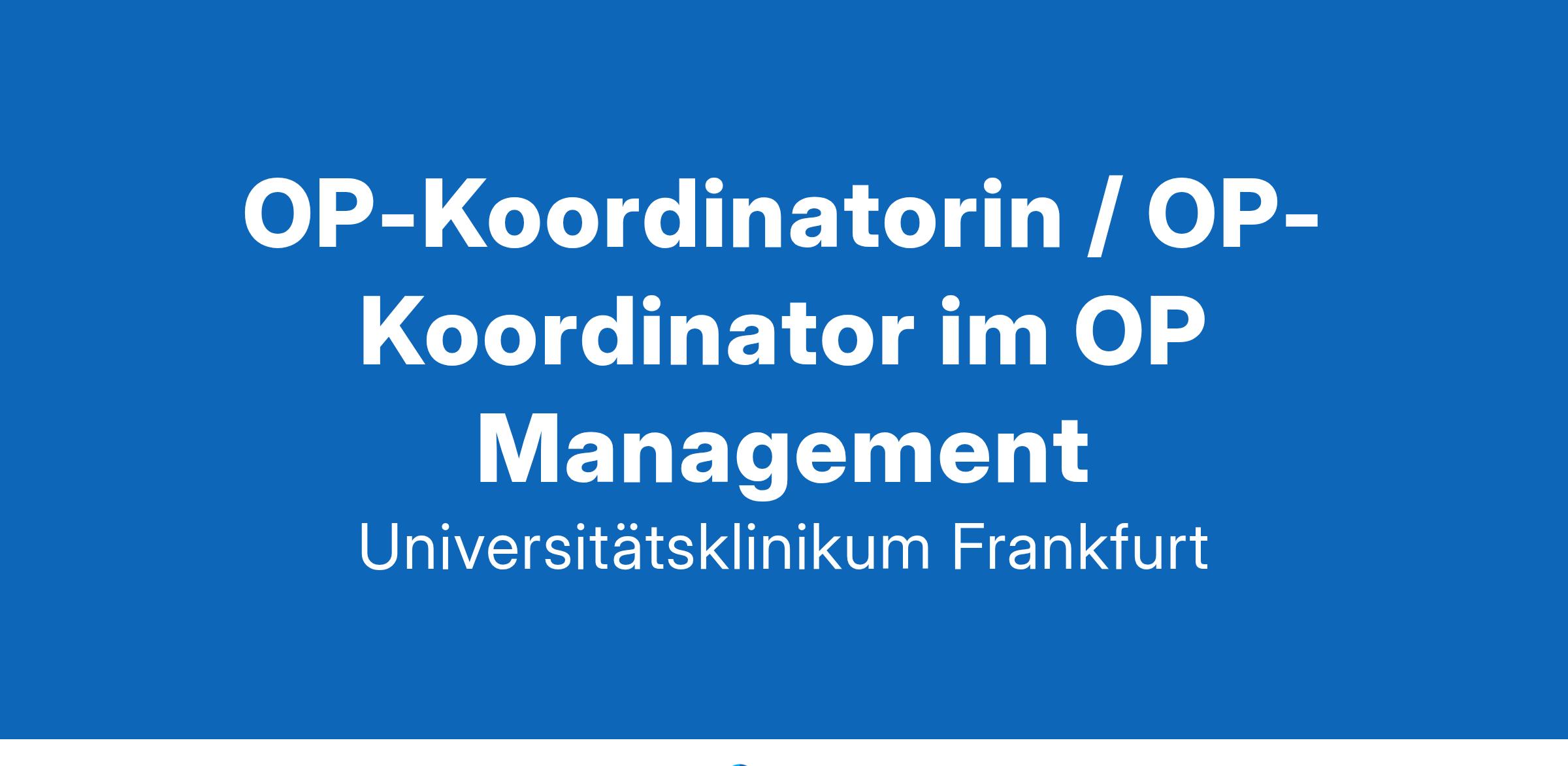 „Aus Wissen wird Gesundheit“ - wir füllen dieses Motto tagtäglich mit Leben, entwickeln neue Ideen und Altbewährtes weiter. Das Universitätsklinikum Frankfurt besteht seit 1914 und unsere rund 8.500 Beschäftigten bringen sich mit ihrem Können und Wissen an den 33 Fachkliniken, klinisch theoretischen Instituten und in den Verwaltungsbereichen ein. Die enge Verbindung von Krankenversorgung mit Forschung und Lehre sowie ein Klima der Kollegialität, Internationalität und berufsgruppenübergreifender Zusammenarbeit zeichnen das Universitätsklinikum aus.OP-Koordinatorin / OP-Koordinator im OP Management(wir richten uns mit dieser Ausschreibung an Bewerbende jeden Geschlechts)Vollzeit | unbefristet | Ausschreibungsnummer: 164-2025Die Aufgabe des OP-Managements ist es, Strukturen und Prozesse zu entwickeln und schließlich zu steuern, um alle OP-Abläufe effizient zu gestalten. Nur so ist es gewährleistet, dass die Patientin / der Patient am Tag iherer/ seiner Operation prozessual optimal versorgt wird. An diesen Prozessen ist ein hohes Maß an Interprofessionalität gebunden. Das OP-Management funktioniert als zentrale Schnittstelle, um alle Berufsgruppen einzubinden und unterstützt so einen reibungslosen Ablauf.Organisatorisch wird das OP-Management-Team durch eine OP-Managerin / einen OP-Manager und eine ärztliche Leitung des OPMs geführt. Die OP-Koordination ist eine Stabsstelle des UKF und direkt dem Vorstandsvorsitzenden unterstellt.