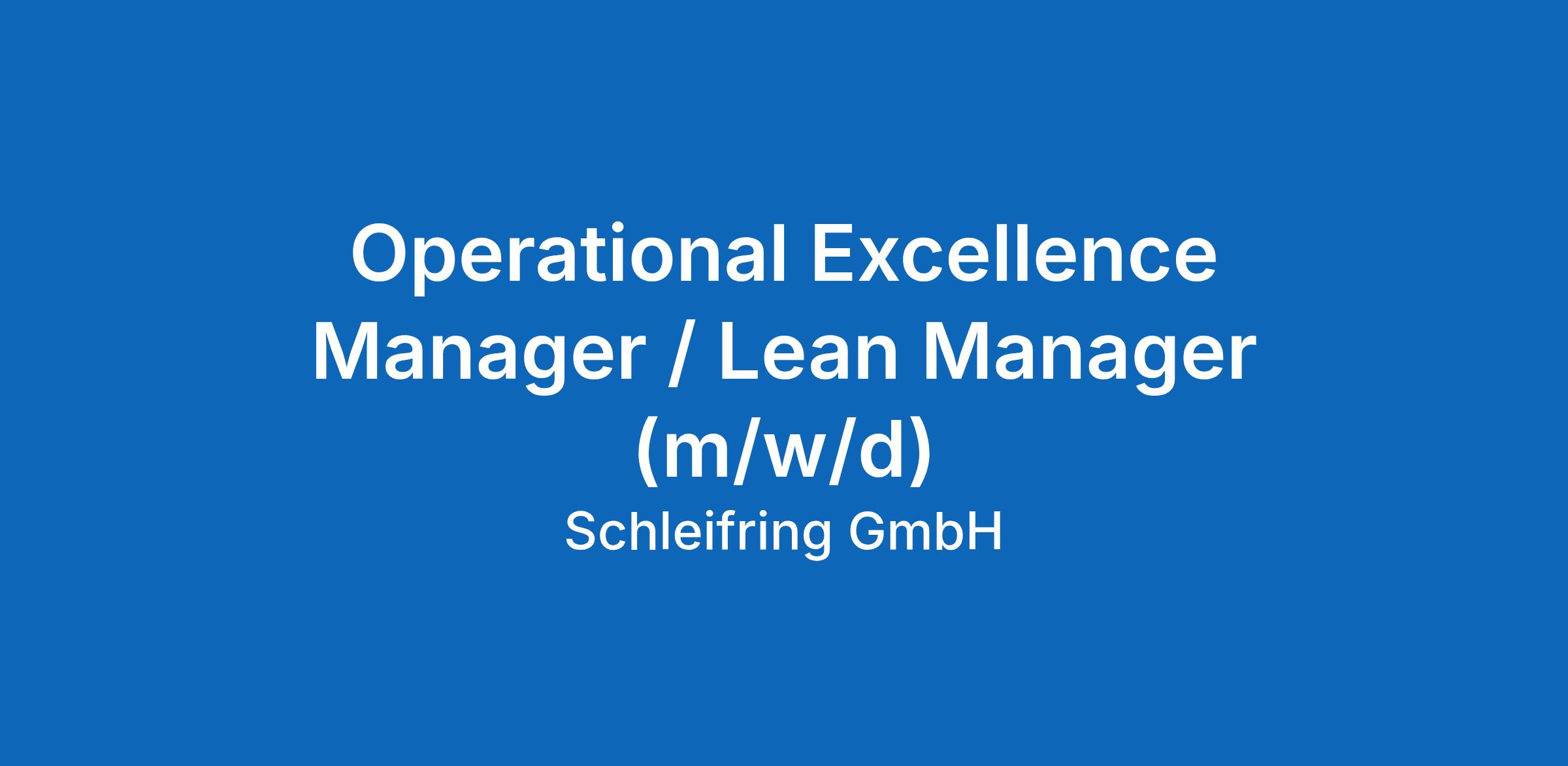 Operational Excellence Manager / Lean Manager (m/w/d)