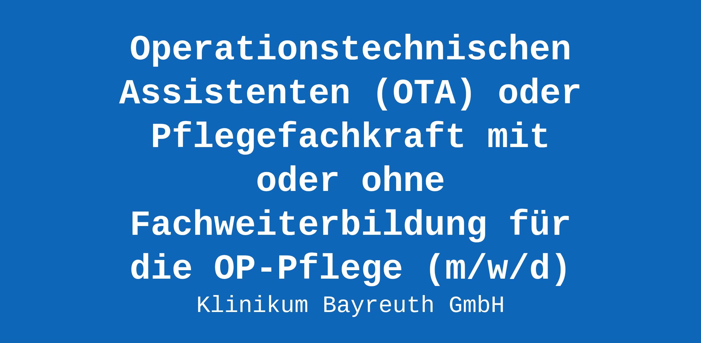 Operationstechnischen Assistenten (OTA) oder Pflegefachkraft mit oder ohne Fachweiterbildung für die OP-Pflege (m/w/d)