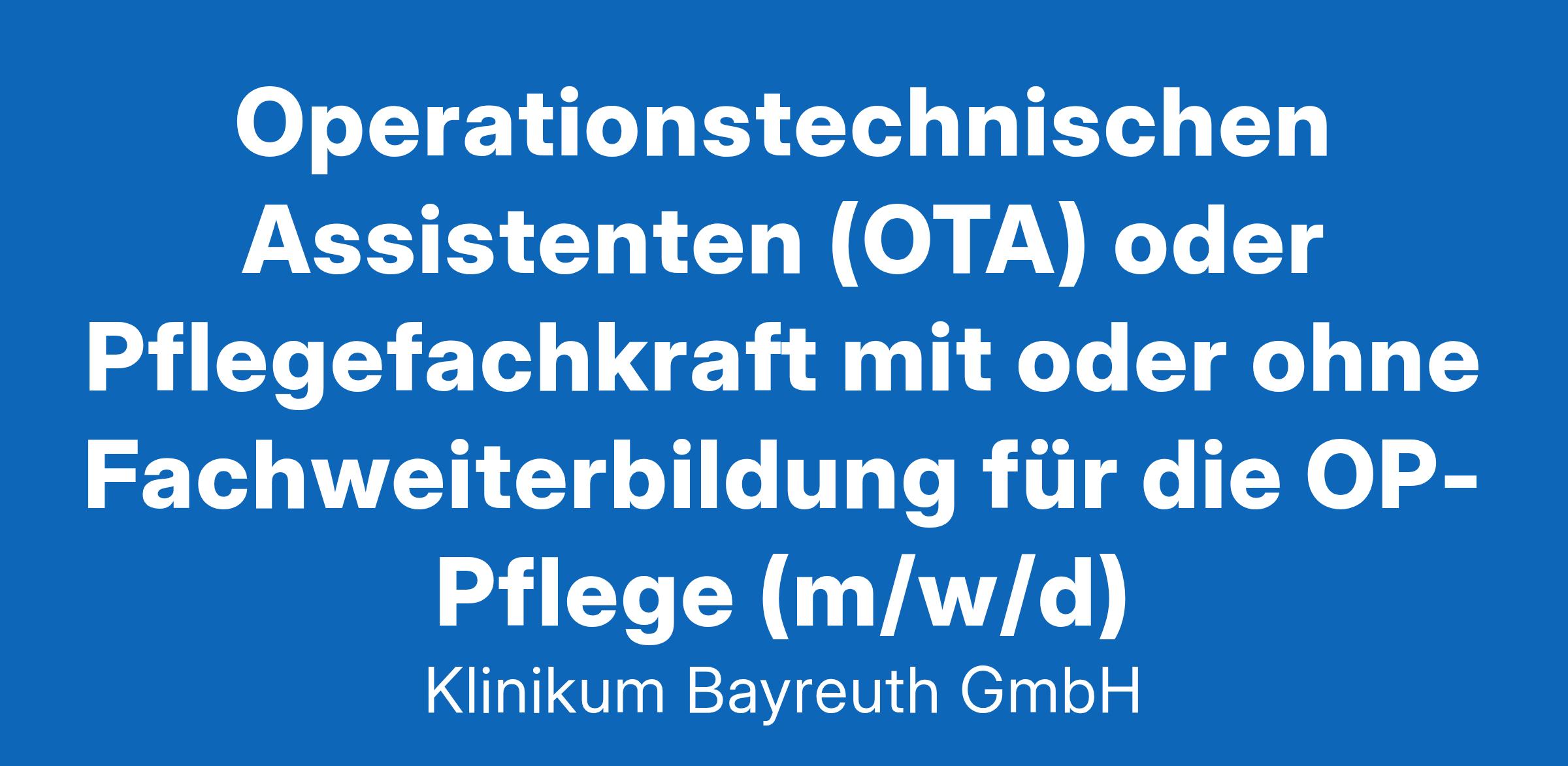 Operationstechnischen Assistenten (OTA) oder Pflegefachkraft mit oder ohne Fachweiterbildung für die OP-Pflege (m/w/d)