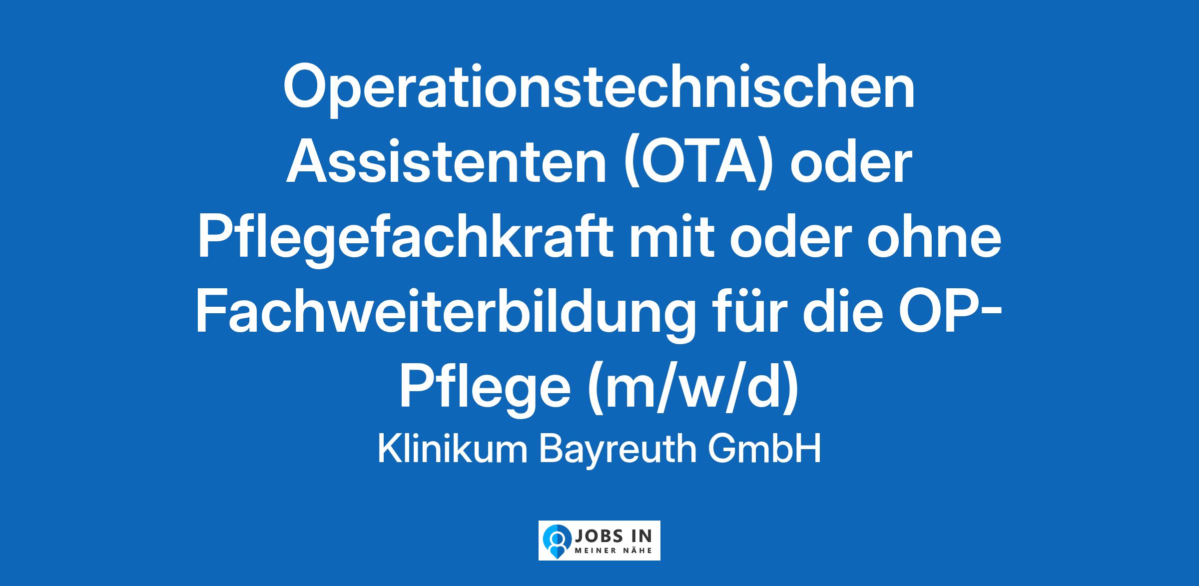 Operationstechnischen Assistenten (OTA) oder Pflegefachkraft mit oder ohne Fachweiterbildung für die OP-Pflege (m/w/d)