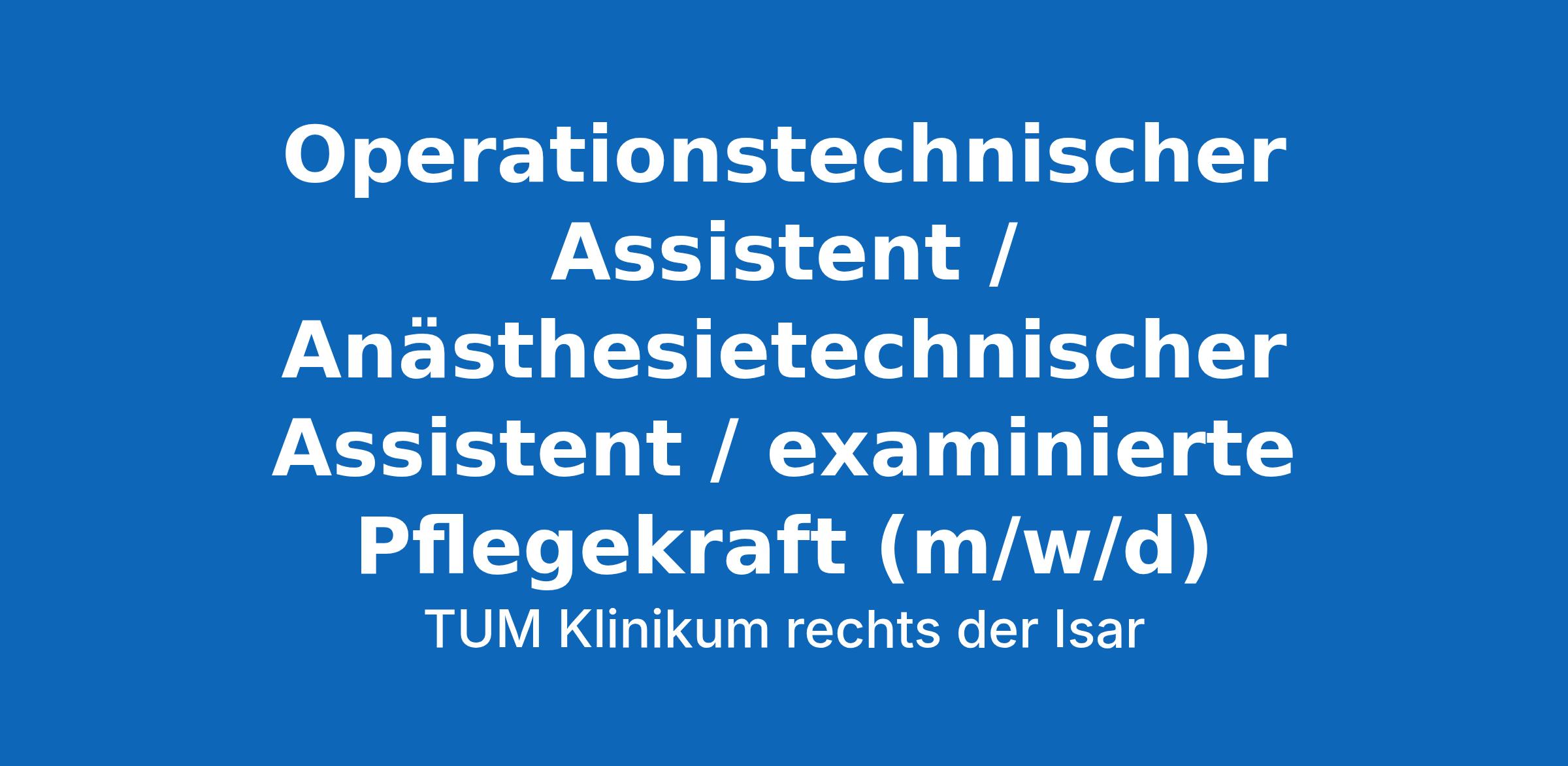 Operationstechnischer Assistent / Anästhesietechnischer Assistent / examinierte Pflegekraft (m/w/d)