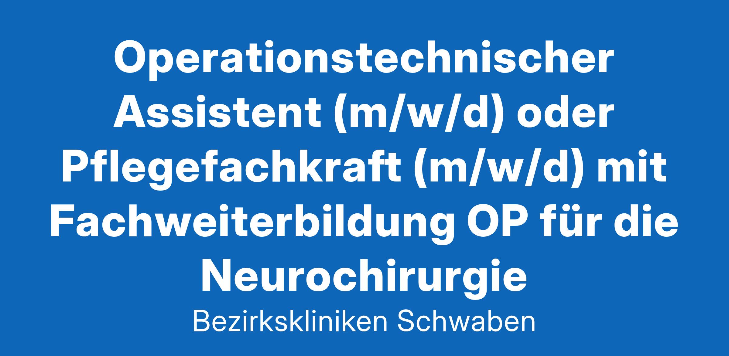 Operationstechnischer Assistent (m/w/d) oder Pflegefachkraft (m/w/d) mit Fachweiterbildung OP für die Neurochirurgie