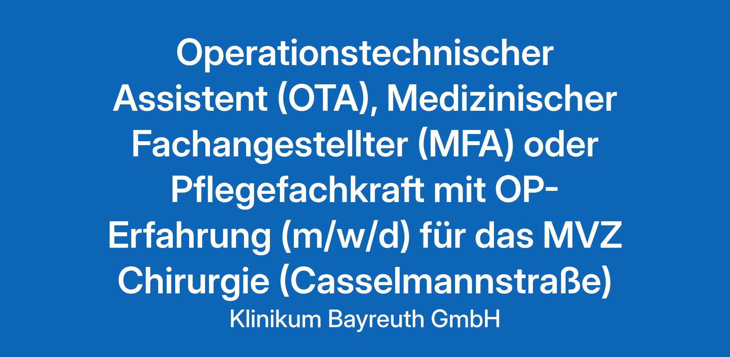 Operationstechnischer Assistent (OTA), Medizinischer Fachangestellter (MFA) oder Pflegefachkraft mit OP-Erfahrung (m/w/d) für das MVZ Chirurgie (Casselmannstraße)