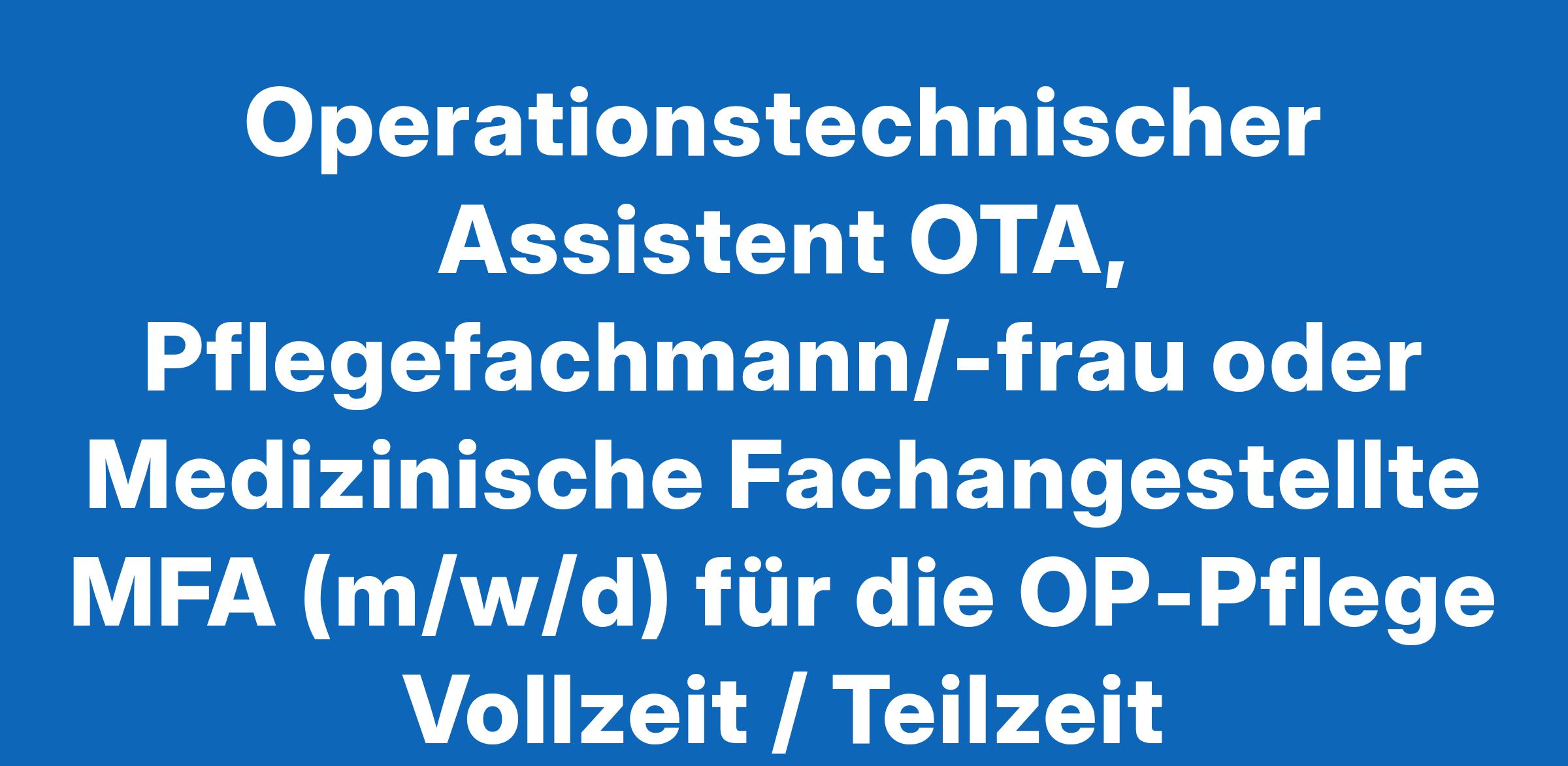 Operationstechnischer Assistent OTA, Pflegefachmann/-frau oder Medizinische Fachangestellte MFA (m/w/d) für die OP-Pflege Vollzeit / Teilzeit