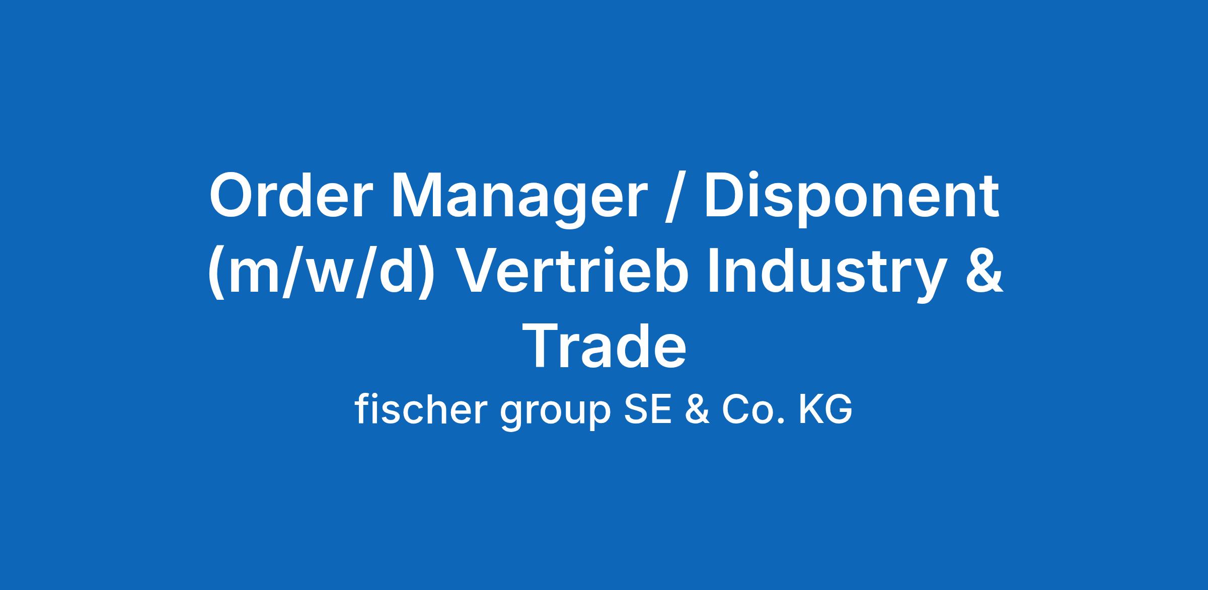 Order Manager/Disponent (m/w/d) Vertrieb Industry & Trade