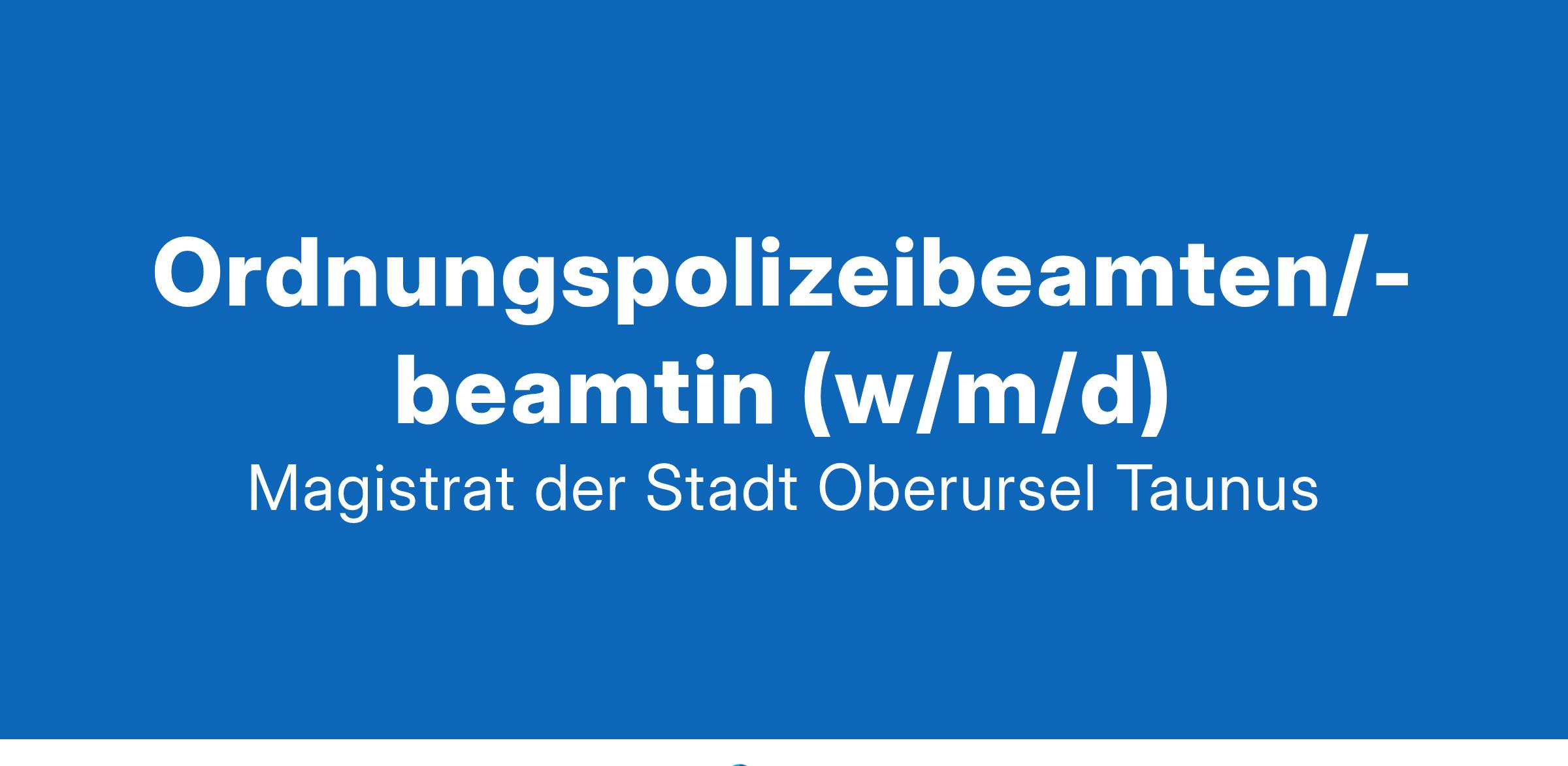 Wir suchen Sie zum nächstmöglichen Zeitpunkt eine/n Ordnungspolizeibeamten/-beamtin (w/m/d) Bei der Stadtverwaltung Oberursel (Taunus) ist im Geschäftsbereich 32 „Einwohnerservice, Ordnung und Sicherheit“, Abteilung 322 „Stadtpolizei“ zum nächstmöglichen Zeitpunkt eine Vollzeitstelle mit einer wöchentlichen Arbeitszeit von 39 Stunden eines/einer Ordnungspolizeibeamten/-beamtin (w/m/d) als Elternzeitvertretung vorerst für ein Jahr befristet, zu besetzen. Die Tätigkeit wird nach Entgeltgruppe 9a TVöD entlohnt. Als Ordnungspolizeibeamter/in arbeiten Sie in einem Team von 10 Kollegen und Kolleginnen in der Abteilung „Stadtpolizei“. Das Aufgabengebiet umfasst im Wesentlichen: