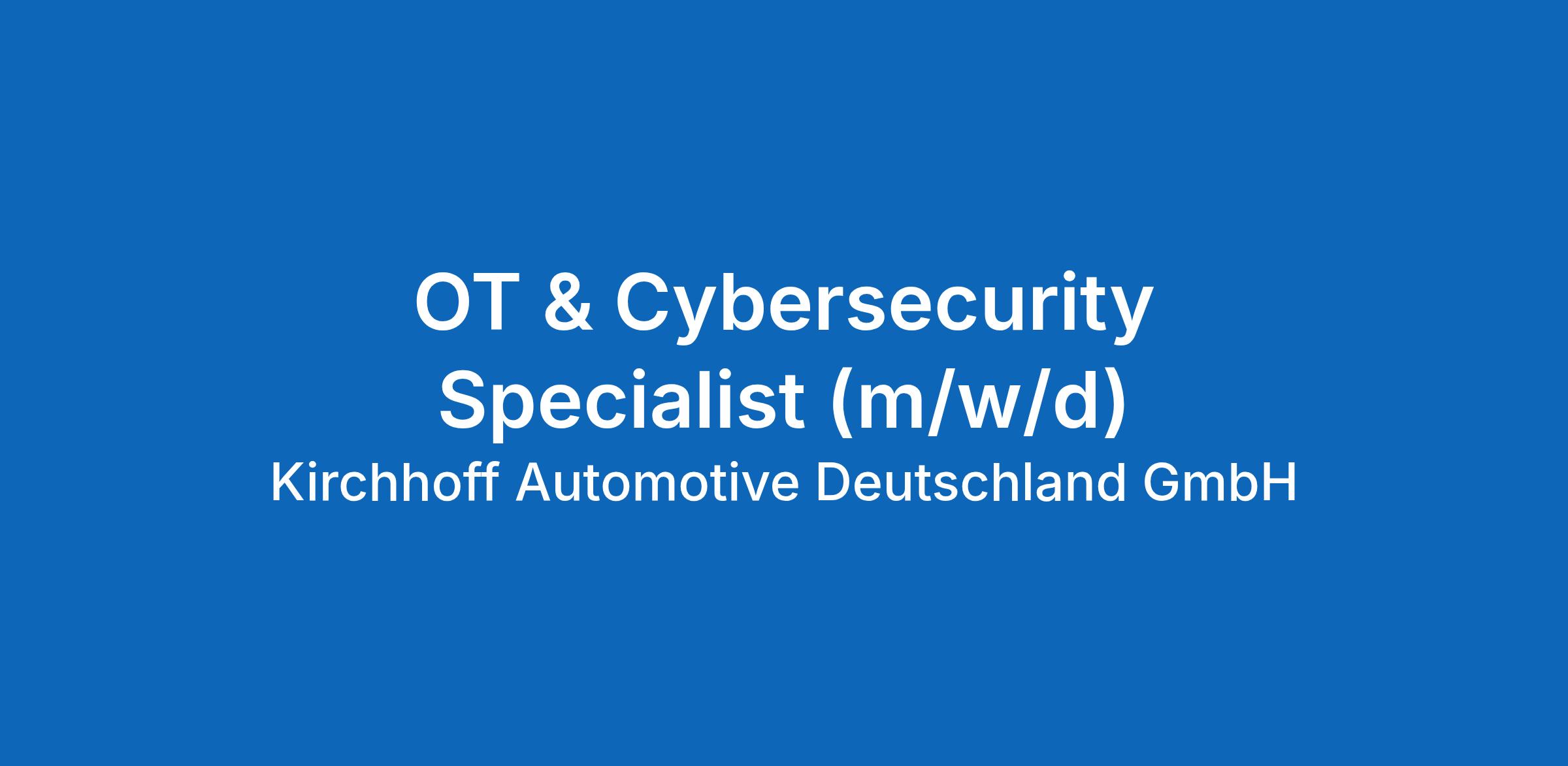 OT & Cybersecurity Specialist (m/w/d)