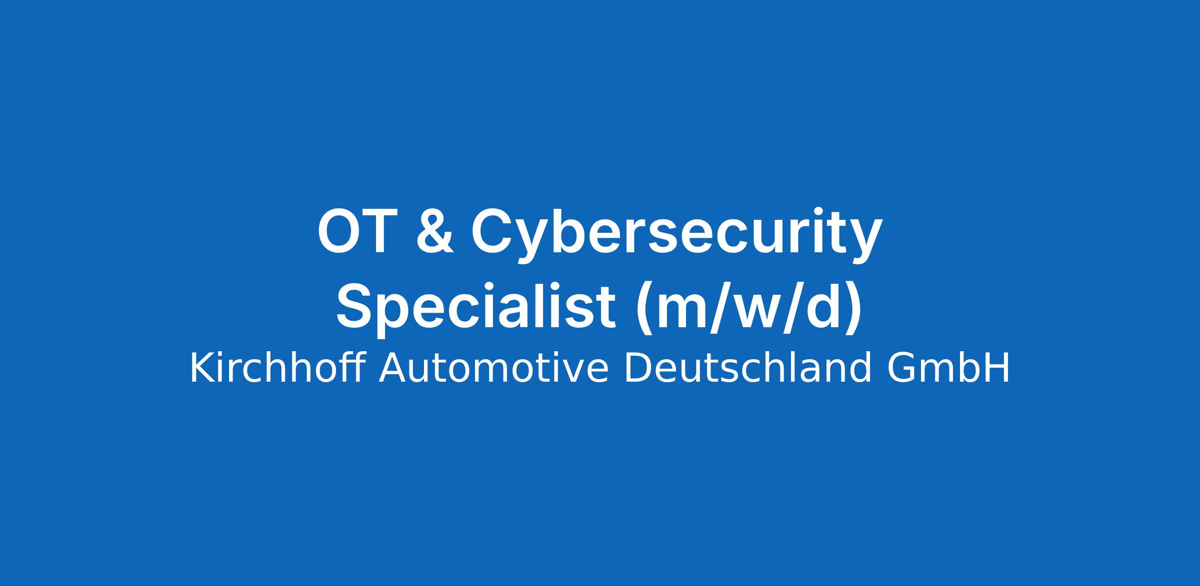 OT & Cybersecurity Specialist (m/w/d)