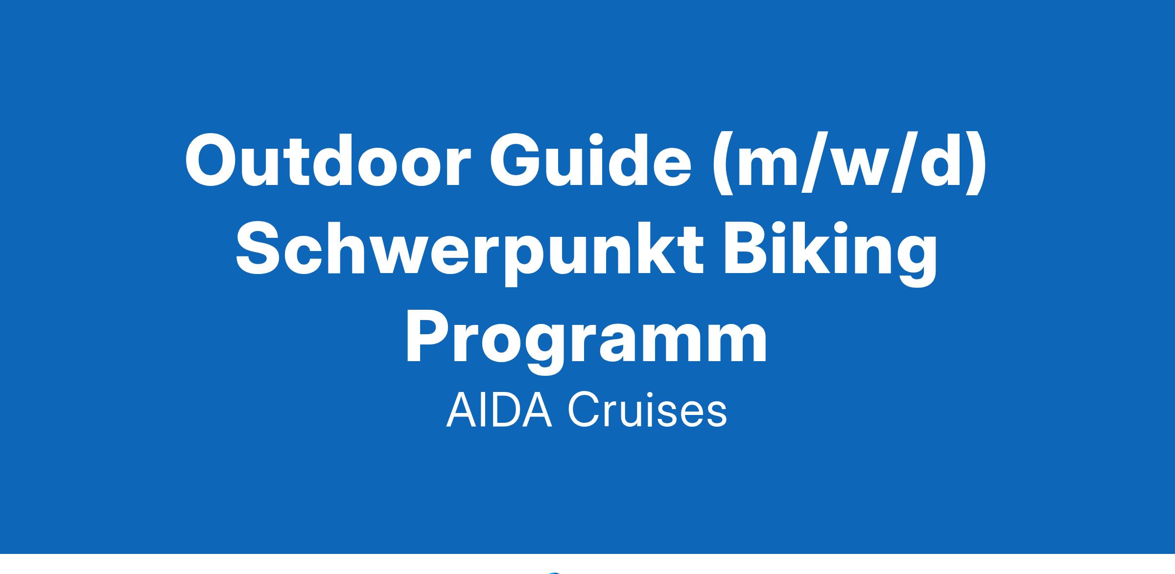 Willkommen bei AIDA - dem Unternehmen, in dem Teamspirit wirklich gelebt wird. Komm in unsere internationale AIDA Familie und arbeite bei einem der bekanntesten und innovativsten Kreuzfahrtunternehmen weltweit. Um die Schönheit der Meere und der Erde zu schützen, sind wir Vorreiter für nachhaltige Kreuzfahrt. Entdecke bei uns deinen #PlaceToWe.Ab Frühjahr 2025 suchen wir dich an Bord unserer Schiffe. Verantwortung für die professionelle Durchführung sowie die Vor- und Nachbereitung der Biking AusflügeRegelmäßige Pflege und Wartung des hochwertigen Ausflugs-Equipments sowie der Fahrräder und PedelecsBeratung der Gäste bei der Ausflugswahl und Spaß am VerkaufVorbereitung der Biking Routen in neuen Destinationen sowie Präsentation des BikingprogrammsRecherche und Weiterentwicklung von zukünftigen ProgrammenUnterstützung der weiteren Sportarten in der Abteilung Activities Berufsausbildung und/oder Studium, idealerweise erste BerufserfahrungGute Deutsch- und EnglischkenntnisseSicher im Umgang mit MS Office Dienstleistungs- und Vertriebsorientiert sowie erste Verkaufserfahrungen von VorteilSympathisches Auftreten, Kommunikationsstärke und TeamgeistKörperliche Fitness und Spaß im Umgang mit Gästegruppen