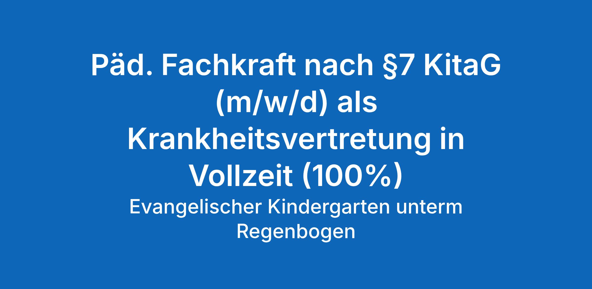 Die Evangelische Kirchengemeinde Lauda sucht zur Verstärkung ihres Teams in der Evang.Kindertageseinrichtung „Unterm Regenbogen“ Lauda ab sofort eine