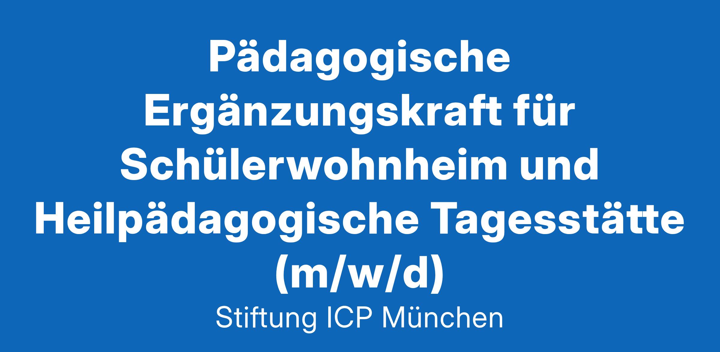Die Stiftung ICP München unterhält in München Sendling-Westpark eine Heilpädagogische Tagesstätte mit angeschlossenem Schülerwohnheim. Dabei liegt der Schwerpunkt auf der Förderung der lebenspraktischen Fähigkeiten. Unser angegliedertes Schülerwohnheim bietet ganzjährig für Kinder und Jugendliche mit einer körperlichen Behinderung ein Zuhause.