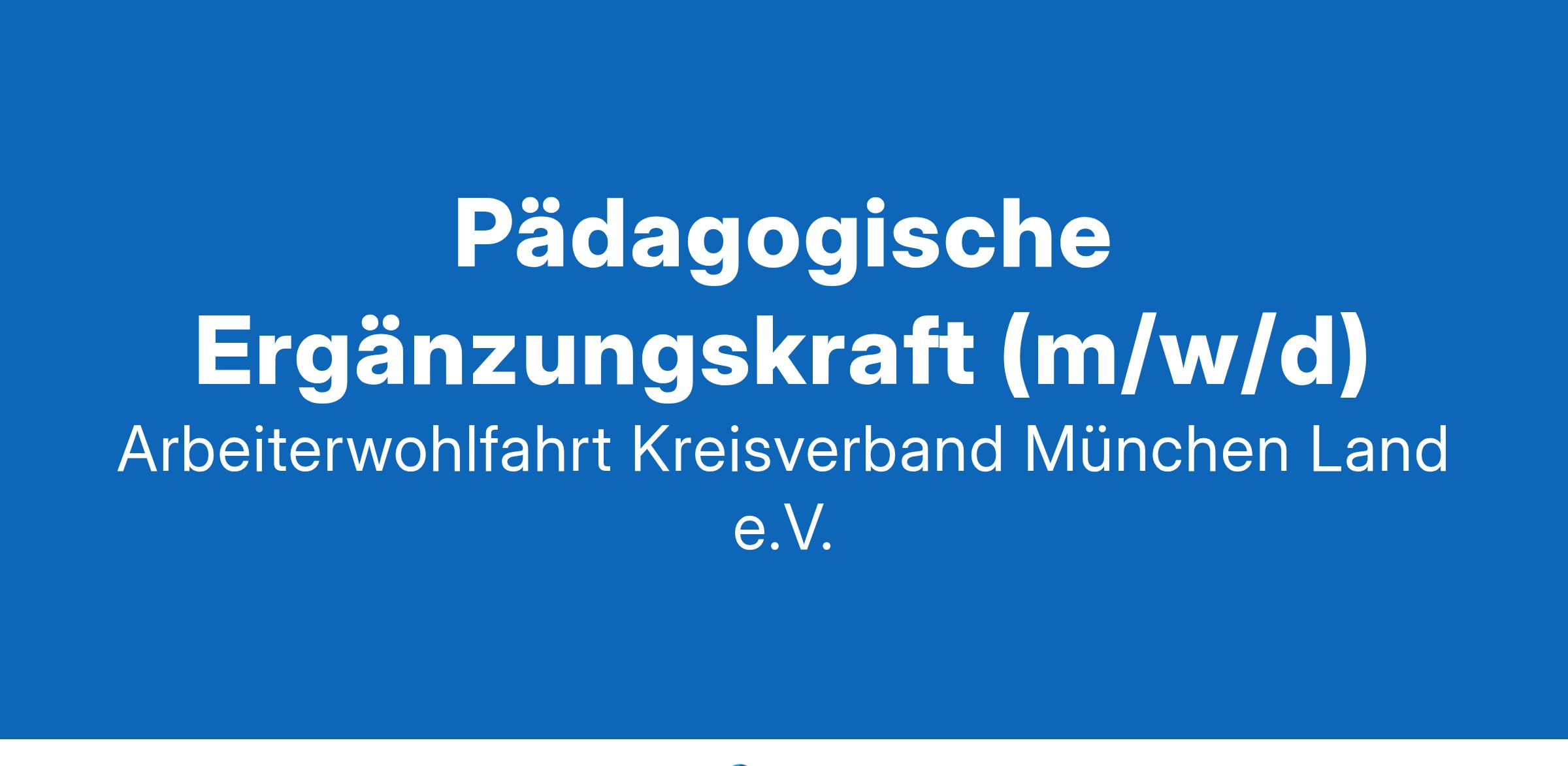 Pädagogische Ergänzungskraft (m/w/d)für unser Kinderhaus »Gänseliesl« in der Gemeinde BrunnthalKinderpflegerin, Pädagogische ErgänzungskräfteBrunnthalDer AWO Kreisverband München-Land e.V. engagiert sich in über 90 sozialen Einrichtungen im Landkreis München für Kinder, Jugendliche, Familien, Senioren, Flüchtlinge und Betroffene im Bereich der WohnungsnotfallhilfeFür unser Kinderhaus »Gänseliesl« in der Gemeinde Brunnthal suchen wir ab sofort einepädagogische Ergänzungskraft ( m/w/d)(Kinderpfleger*in bzw. vergleichbarer Abschluss, in Voll- oder Teilzeit)