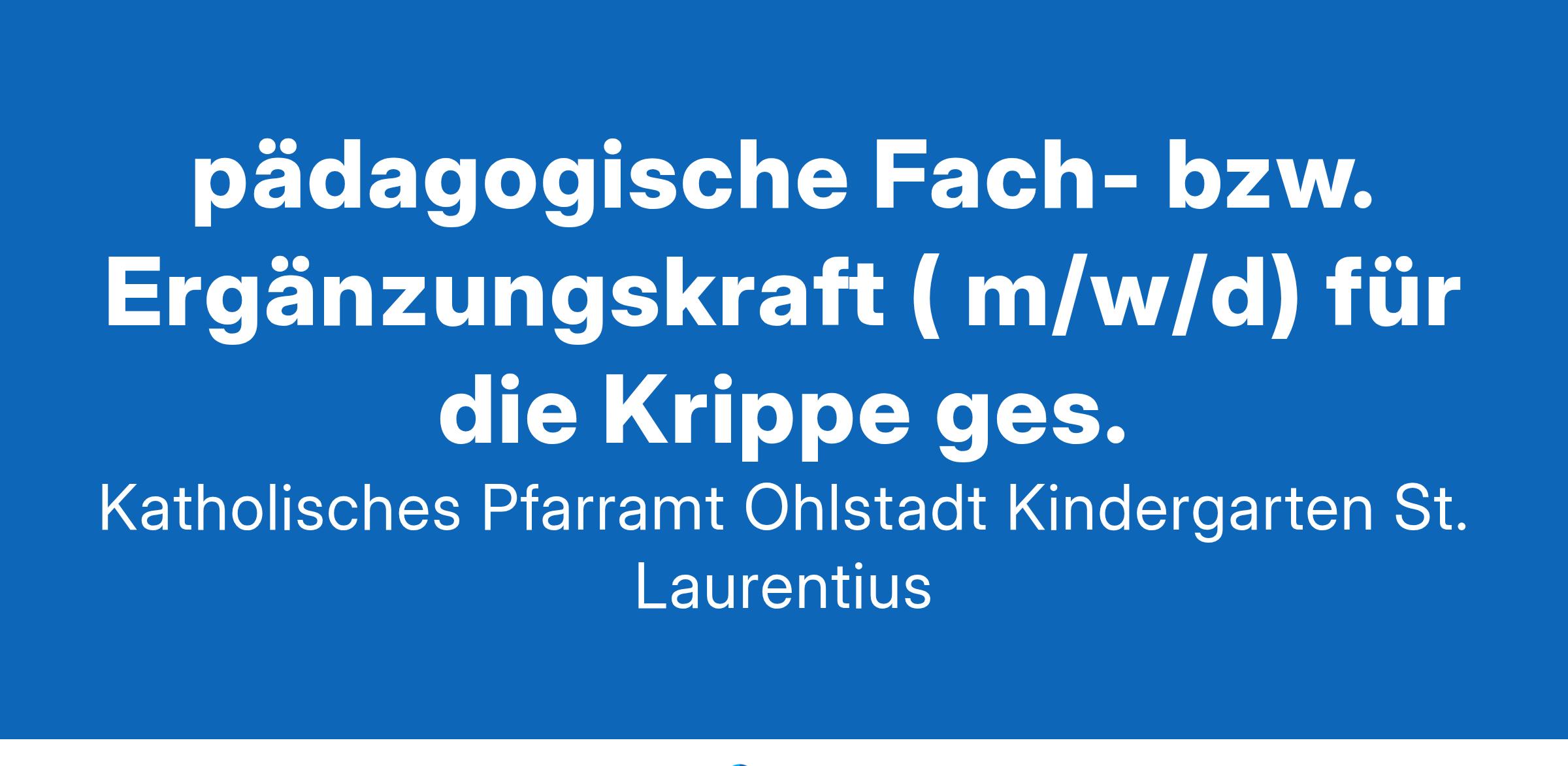 pädagogische Fach- bzw. Ergänzungskraft ( m/w/d) für die Krippe ges. Die Kath. Kita “Haus für Kinder St-Laurentius”