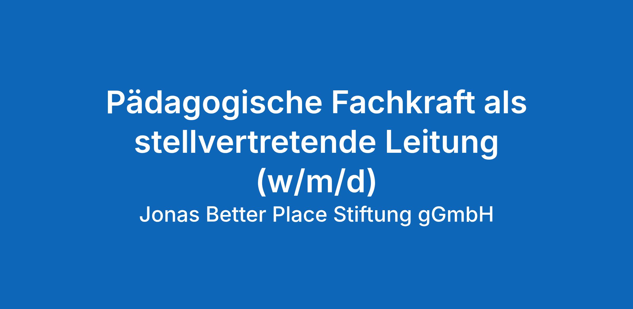 Pädagogische Fachkraft als stellvertretende Leitung (w/m/d)