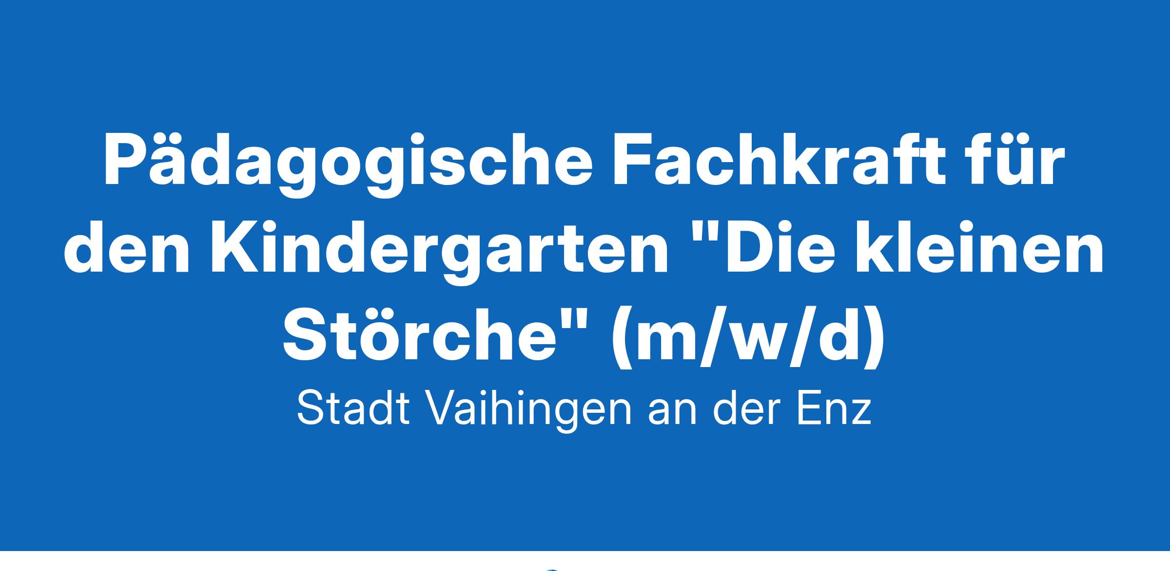 Wenn Sie Teil unseres Teams in der neuen Einrichtung „Die kleinen Störche“ werden möchten, freuen wir uns auf Ihre Bewerbung bitte direkt über unser Online-Bewerberportal www.vaihingen.de