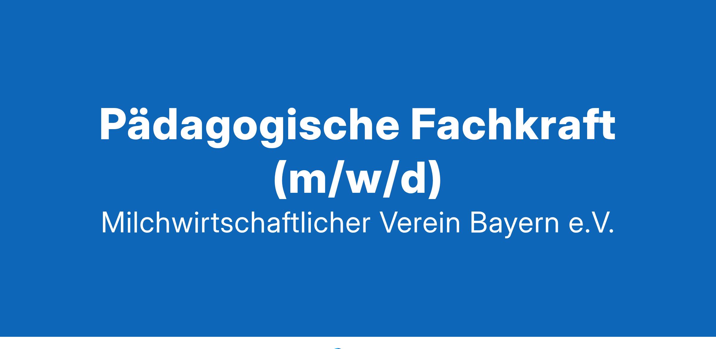 Pädagogische Fachkraft (m/w/d) Der Milchwirtschaftliche Verein Bayern e.V. ist Träger des Schülerwohnheims für Auszubildende im Beruf Milchtechnologe/Milchtechnologin am Lehr-, Versuchs- und Fachzentrum für Molkereiwirtschaft Kempten (Molkereischule). Zur Unterstützung unseres Teams für die Betreuung der Auszubildenden suchen wir zum nächstmöglichen Zeitpunkt Pädagogische Fachkräfte (m/w/d) in Teilzeit bis zu 30 Stunden/Woche. Sie unterstützen die Heimleitung bei der pädagogischen Arbeit mit Auszubildenden (m/w) im Anschluss an den Unterricht und bei der Organisation. Ihr Profil: Sie besitzen eine abgeschlossene Ausbildung als staatlich anerkannte/r Erzieher/in oder eine vergleichbare Qualifikation. Sie sind kommunikativ, kreativ und teamfähig, arbeiten selbstständig mit persönlichem Engagement, besitzen eine hohe Beratungskompetenz und haben Kenntnisse in den gängigen Office Programmen Sie können pädagogisches und wirtschaftliches Handeln vereinen. Unser Angebot: Wir bieten eine tarifgerechte Bezahlung nach dem Tarifvertrag für den öffentlichen Dienst der Länder (TV-L) eine attraktive betriebliche Altersvorsorge, berufliche Sicherheit, Raum für Ihre individuelle Entwicklung interdisziplinäre Teamarbeit, Freiraum für eigene Ideen und Gestaltungsmöglichkeiten Bei Interesse senden Sie Ihre Bewerbung bitte schriftlich oder per E-Mail an: Milchwirtschaftlicher Verein Bayern e.V.,
