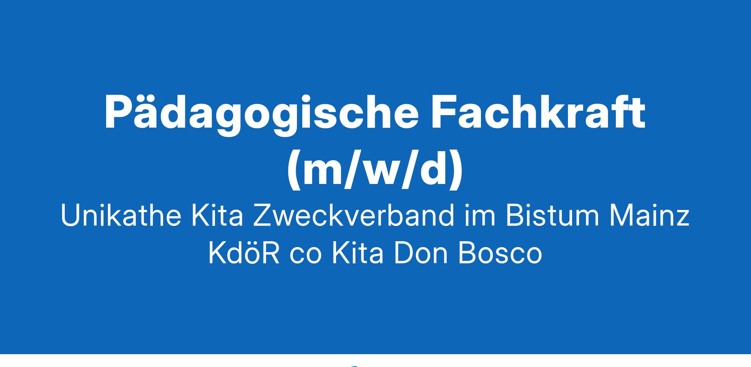 Pädagogische Fachkraft (m/w/d) Wir suchen ab sofort Pädagogische Fachkräfte (m/w/d) in Teilzeit (mind. 19,5 Std./Woche) Wir bieten Ihnen mit dieser Stellenausschreibung eine tolle Möglichkeit an, um sich weiterzuentwickeln. In unserer Kindertagesstätte Don Bosco betreuen wir bis zu 50 Kinder im Alter von 3 bis 6 Jahren. Unser schönes Haus steht in Kleinauheim in zentraler Lage und verfügt über ein schönes Außengelände, eine gute Verkehrsanbindung sowie Nähe zum Wildpark Fasanerie. Wir orientieren uns an den Leitlinien und Werten des christlichen Menschenbildes. Unser Erziehungsbild ist ganzheitlich und von einer partizipativen Grundhaltung geprägt. Die Kita zeichnet sich durch ein motiviertes und engagiertes Team, ein sehr gutes Betriebsklima, aktive Eltern und einer gut fundierten Pädagogik aus. Seit dem 01.01.2025 ist die Kita Don Bosco Teil des Unikathe Kita Zweckverbandes im Bistum Mainz. Das sind Ihre Aufgaben: Sie begleiten Kinder in ihren Entwicklungs- und Lernprozessen und gestalten anregende Bildungsra ̈ume Sie nehmen jedes Kind in seiner Persönlichkeit und individuellen Entwicklung wahr Sie beobachten und dokumentieren die individuelle Entwicklung der Kinder Sie richten Angebote und Projekte an Ihren Beobachtungen und der gemeinsamen Reflexion im Team aus Sie sind offen für einen engen und regelmäßigen Austausch mit den Eltern Sie bringen sich aktiv in Teambesprechungen und die Weiterentwicklung unserer Konzeption ein Sie erweitern Ihr Wissen durch regelmäßige Fortbildungen Was Sie erwartet: Vergütung gem. AVR des Dt. Caritasverbandes incl. Jahressonderzahlung Arbeitsmarktzulage (auf Höhe S 8b TVöD SuE) Kirchliche Zusatzversorgung (Betriebsrente) Anerkennung von Vorzeiten möglich 30 Tage Urlaub (bei einer 5-Tage Woche) Fortbildung- und Weiterbildungsmöglichkeiten Supervision Regelmäßige Vorbereitungszeiten, Gruppenbesprechungen und Teamsitzung Möglichkeit zu Exerzitien/Besinnungstage/Bildungsurlaub Wertschätzende Arbeitsatmosphäre Tätigkeiten in einer Kita mit individueller Ausrichtung Ein Arbeitsplatz inmitten der Rhein-Main Metropole, die sowohl die städtischen wie auch die ländlichen Vorteile in sich vereint Was wir erwarten: Eine abgeschlossene Ausbildung als staatlich anerkannte/-r Erzieher/-in, Sozialpädagoge/-in oder eine vergleichbare anerkannte Ausbildung als pädagogische Fachkraft (gerne auch Berufsanfänger/-innen) Einen wertschätzenden und begleitenden Umgang mit Kindern auf ihrem Weg in die Selbstständigkeit Sie bringen sich und Ihre Ideen ein und gestalten den pädagogischen Alltag aktiv mit Sie sind interessiert an persönlicher und fachlicher Weiterentwicklung Sie besitzen die Fähigkeit, im Team zu agieren und konzeptionell zu arbeiten Sie bauen Erziehungspartnerschaften mit Eltern auf Zugehörigkeit zu einer christlichen Kirche Identifikation mit und Bereitschaft, die Aufgaben, Ziele und Werte des katholischen Unikathe Kita-Zweckverbandes mitzutragen und an deren Erfüllung mitzuarbeiten Deutschkenntnisse Level C1 Sie sind interessiert? Dann freuen wir uns auf Ihre schriftliche Bewerbung! Per E-Mail: sebastian.bergmann@Bistum-Mainz.DE & kigadonbosco@pepa.de (Anhänge bitte nur im PDF-Format) Per Post: Geschäftsträger für kath. Kindertageseinrichtungen Dekanate Rodgau und Seligenstadt Sebastian Bergmann Goethestraße 29 63500 Seligenstadt