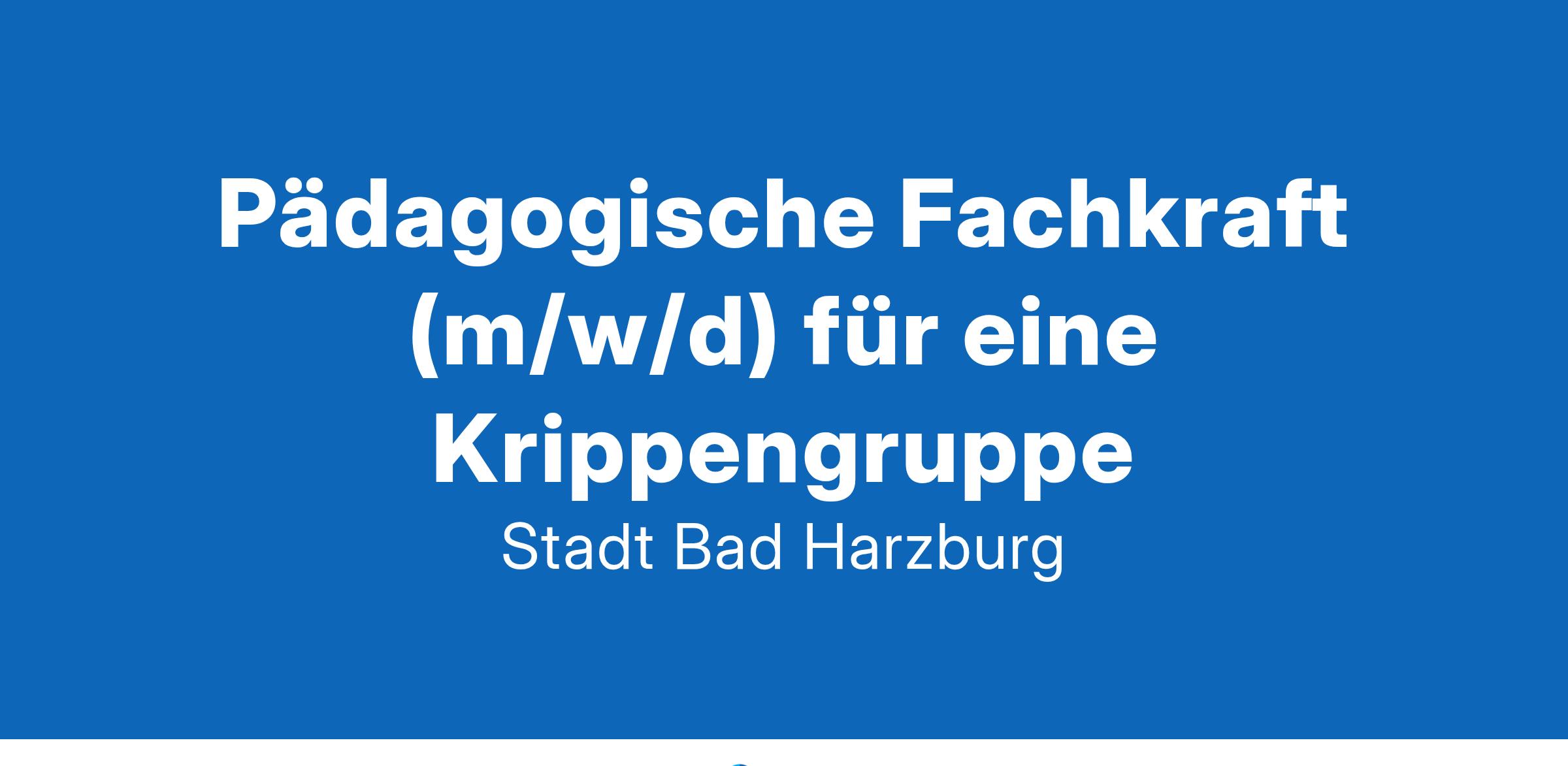 Pädagogische Fachkraft für die Kindertagesstätte Schlewecke Bei der Stadt Bad Harzburg ist in der Kindertagesstätte Schlewecke zum nächstmöglichen Termin eine Stelle als pädagogische Fachkraft (m/w/d) für eine Krippengruppe