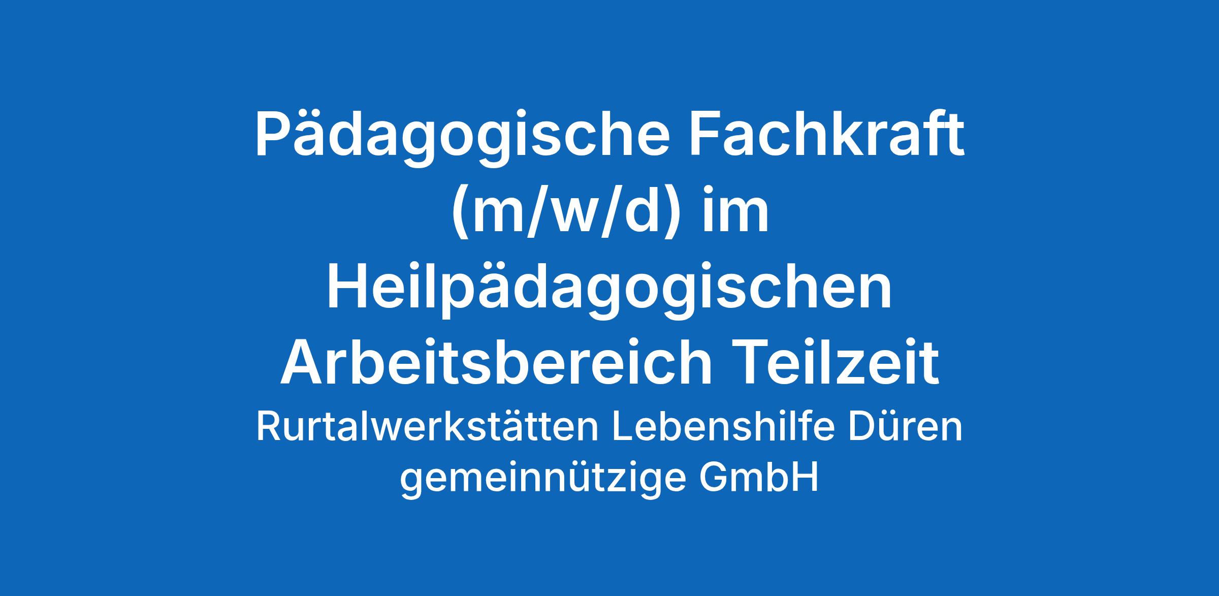 Pädagogische Fachkraft (m/w/d) im Heilpädagogischen Arbeitsbereich Teilzeit