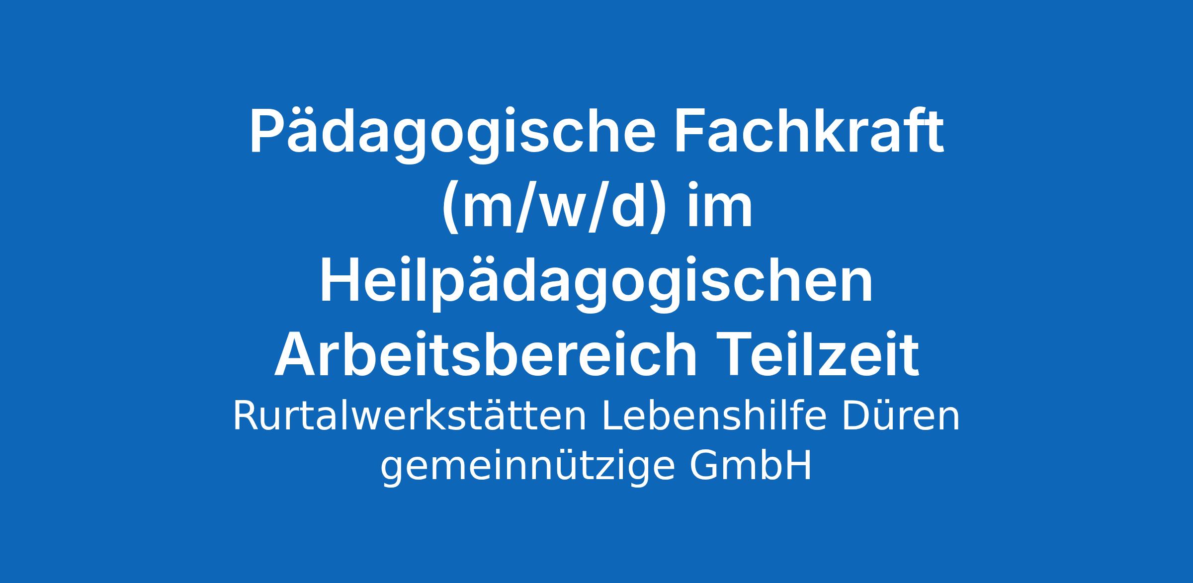 Pädagogische Fachkraft (m/w/d) im Heilpädagogischen Arbeitsbereich für unseren Standort in Huchem-Stammeln (Teilzeit: 30 Stunden)