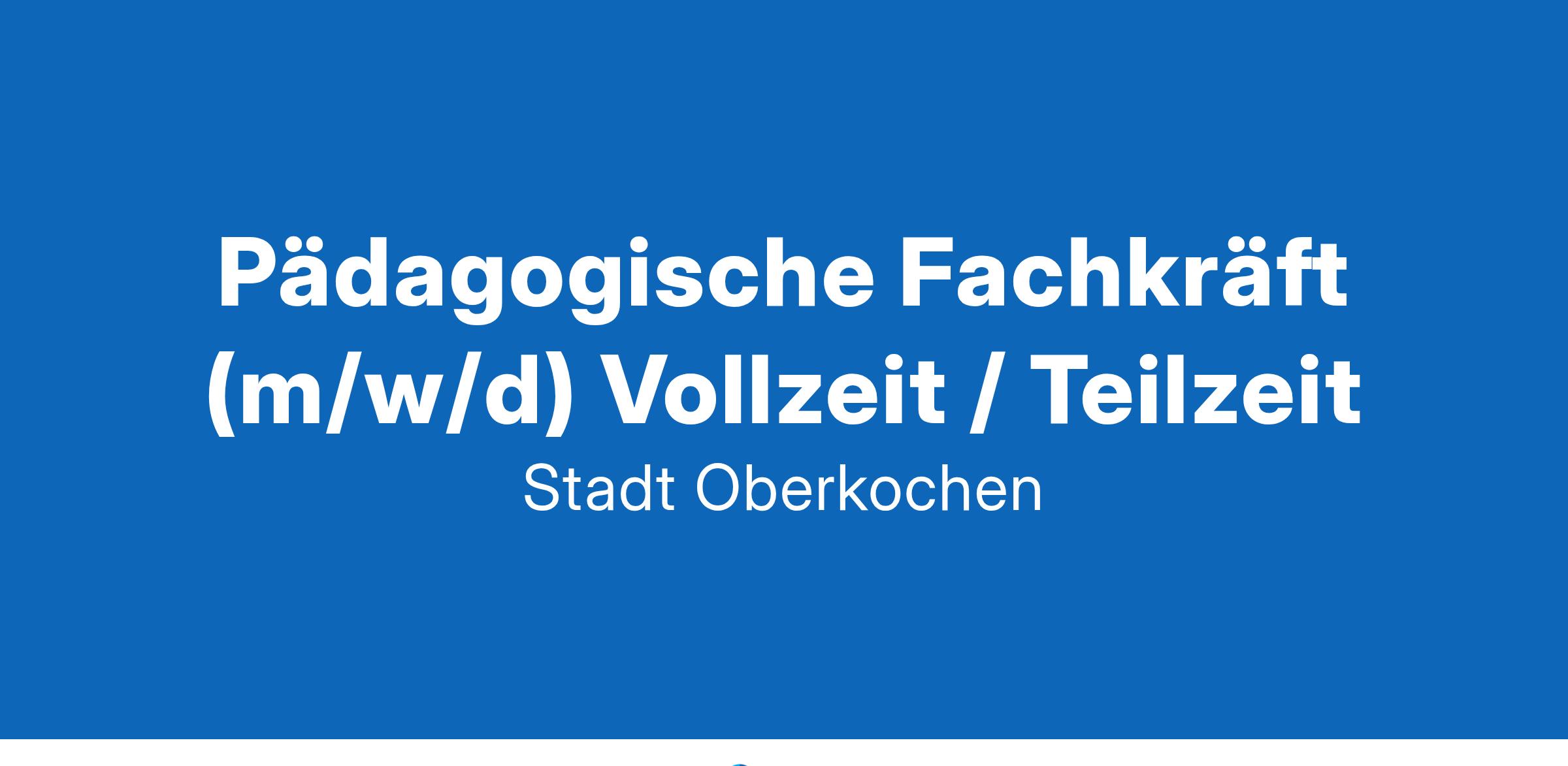 Nutzen Sie hierzu unser Bewerbungsportal auf: www.oberkochen.de --> Jobs und Karriere. Bewerbungen von Schwerbehinderten und Gleichgestellten berücksichtigen wir entsprechend den Zielsetzungen des Schwerbehindertenrechts. Für Rückfragen steht Ihnen Frau Bodenmüller, Personalwesen, Telefon 07364 27-206, vormittags gerne zur Verfügung. Weitere Informationen über unsere Stadt und die Kinderbetreuungseinrichtungen finden Sie im Internet unter www.oberkochen.de.