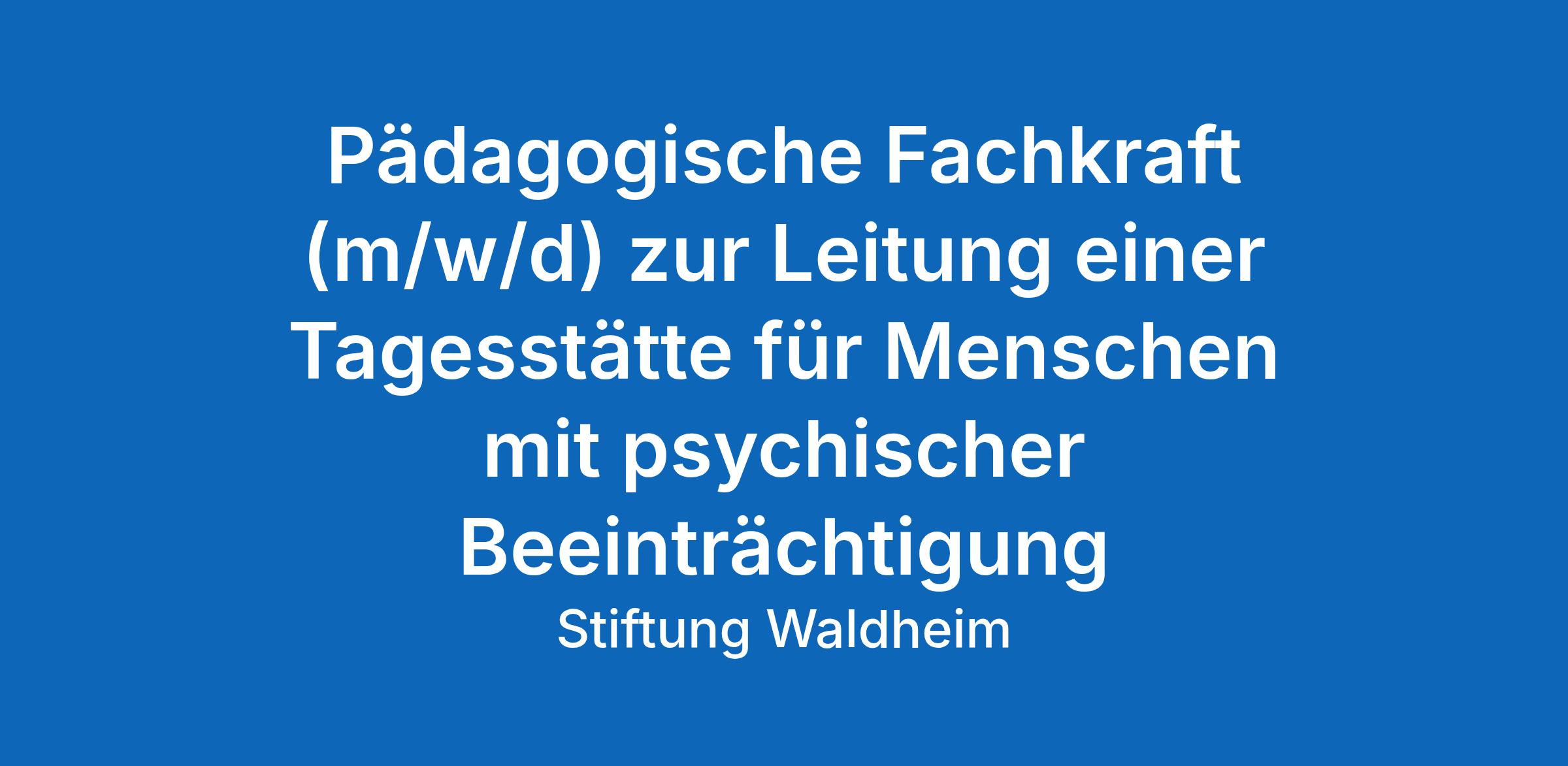 Wir sind die Stiftung Waldheim, eine moderne, zertifizierte Organisation in der Eingliederungshilfe mit Hauptsitz in Langwedel, rund 30 km südöstlich von Bremen. Bei uns finden Menschen mit Beeinträchtigung ein Zuhause und viele Teilhabe-Angebote zum Wohnen, Lernen und Arbeiten. Wir beschäftigen über 690 begeisterte Köpfe in rund 40 verschiedenen Berufsfeldern. Vielleicht bald auch dich?