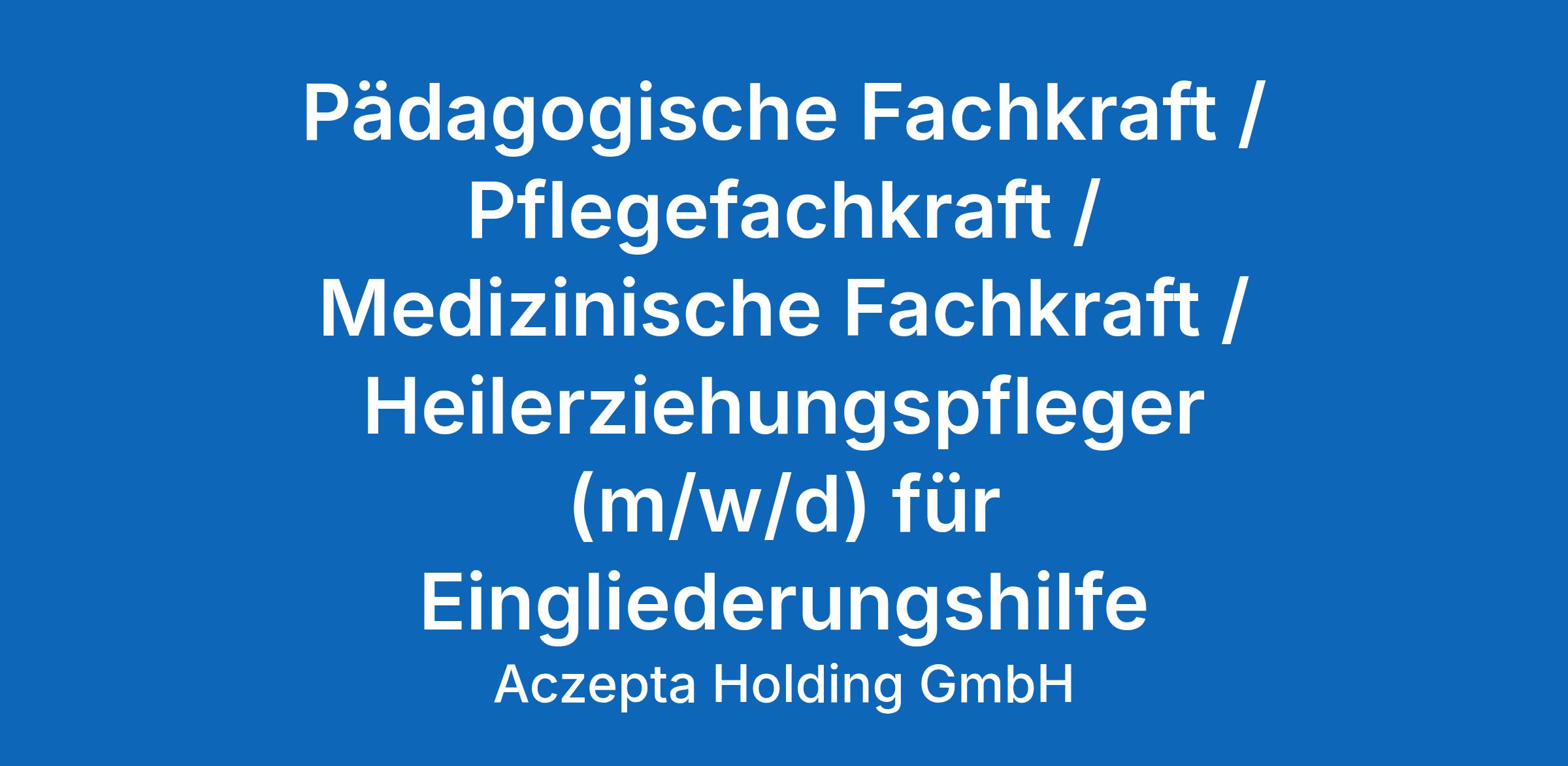 Zur Verstärkung unseres Teams in der Eingliederungshilfe suchen wir zum nächstmöglichen Zeitpunkt eine Pädagogische Fachkraft / Pflegefachkraft / Medizinische Fachkraft / Heilerziehungspfleger (m/w/d) in Teilzeit.