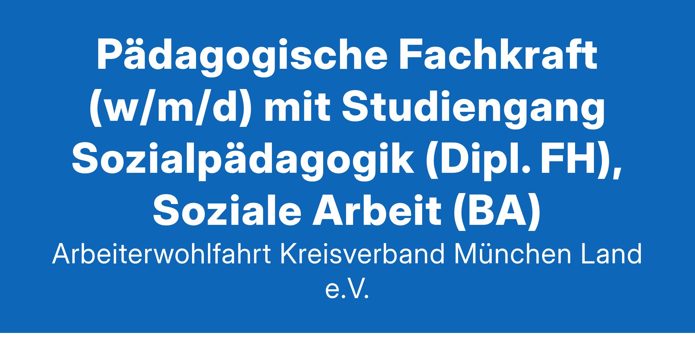 Pädagogische Fachkraft (w/m/d) mit Studiengang Sozialpädagogik (Dipl. FH), Soziale Arbeit (BA)