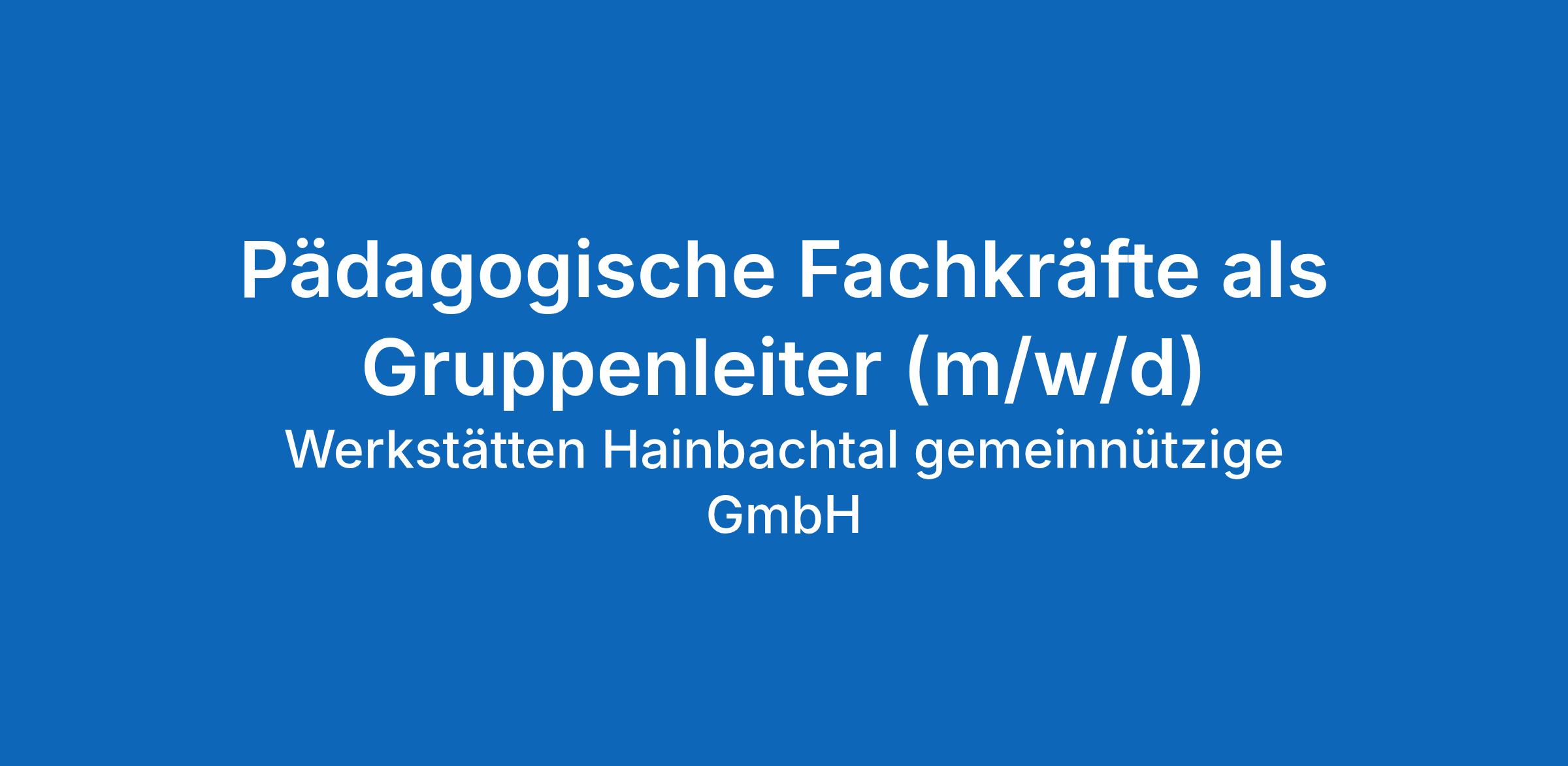 Pädagogische Fachkräfte als Gruppenleiter (m/w/d)