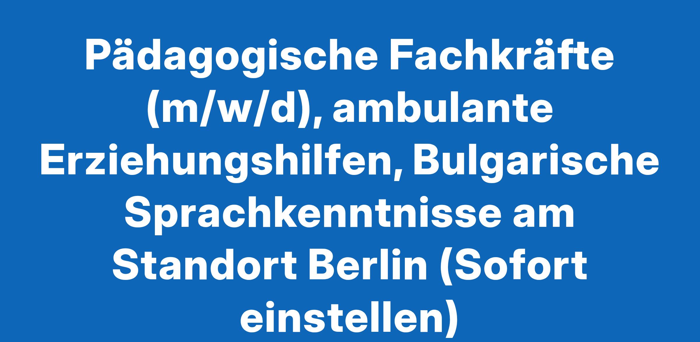 Pädagogische Fachkräfte (m/w/d), ambulante Erziehungshilfen, Bulgarische Sprachkenntnisse am Standort Berlin (Sofort einstellen)