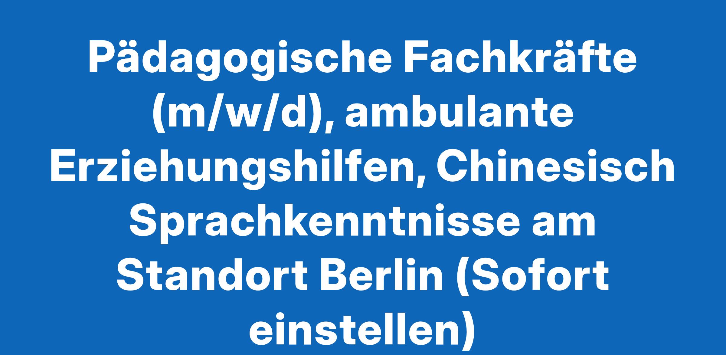 Pädagogische Fachkräfte (m/w/d), ambulante Erziehungshilfen, Chinesisch Sprachkenntnisse am Standort Berlin (Sofort einstellen)