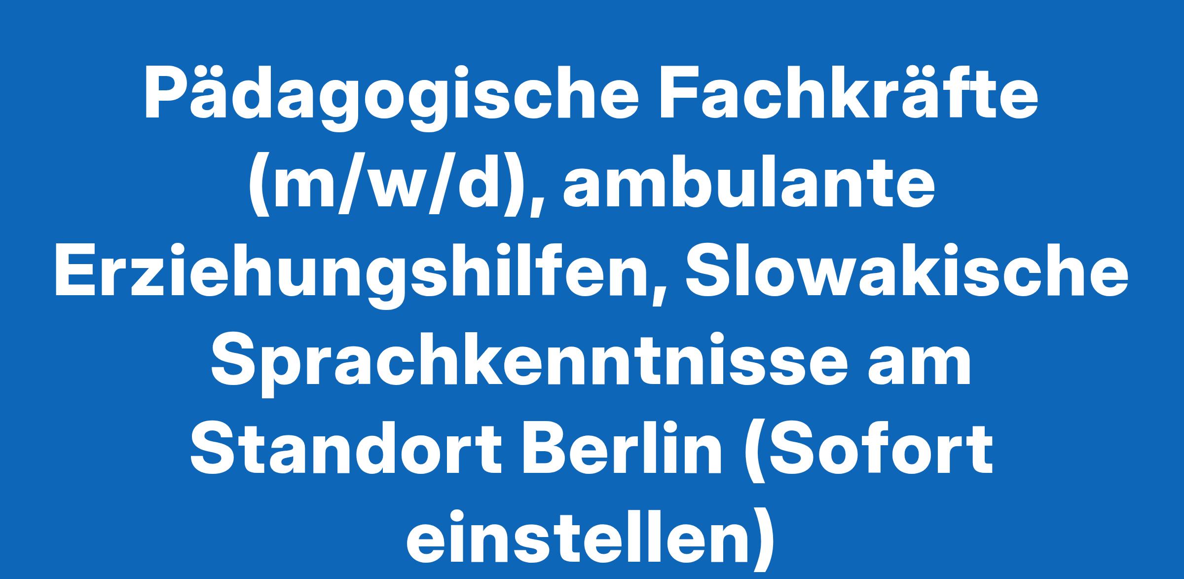Pädagogische Fachkräfte (m/w/d), ambulante Erziehungshilfen, Slowakische Sprachkenntnisse am Standort Berlin (Sofort einstellen)