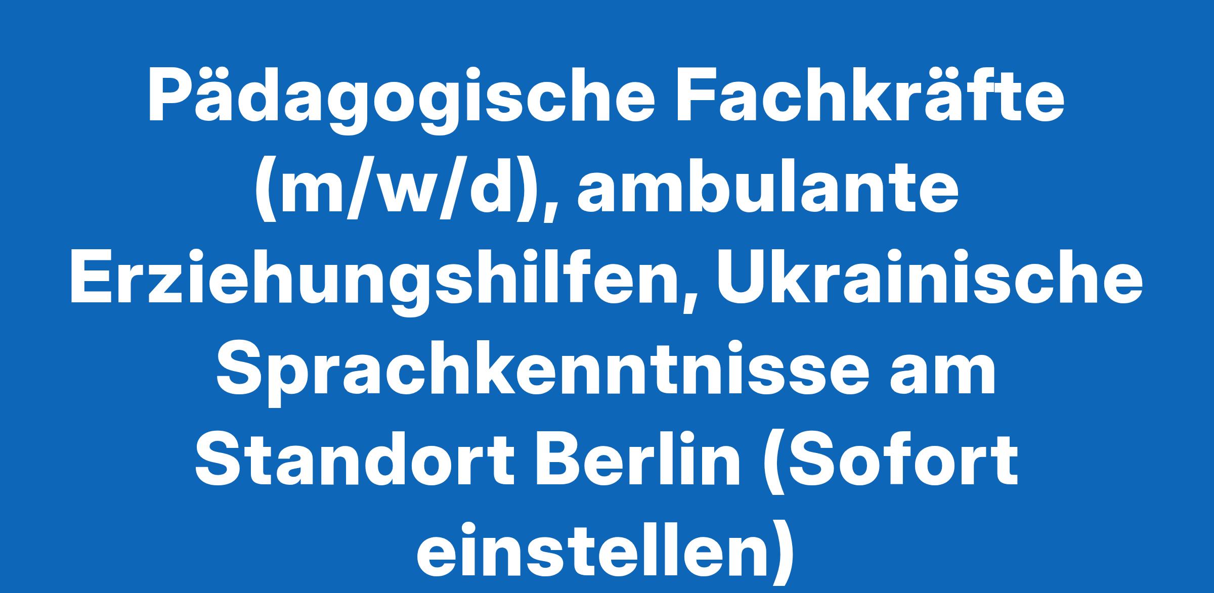 Pädagogische Fachkräfte (m/w/d), ambulante Erziehungshilfen, Ukrainische Sprachkenntnisse am Standort Berlin (Sofort einstellen)