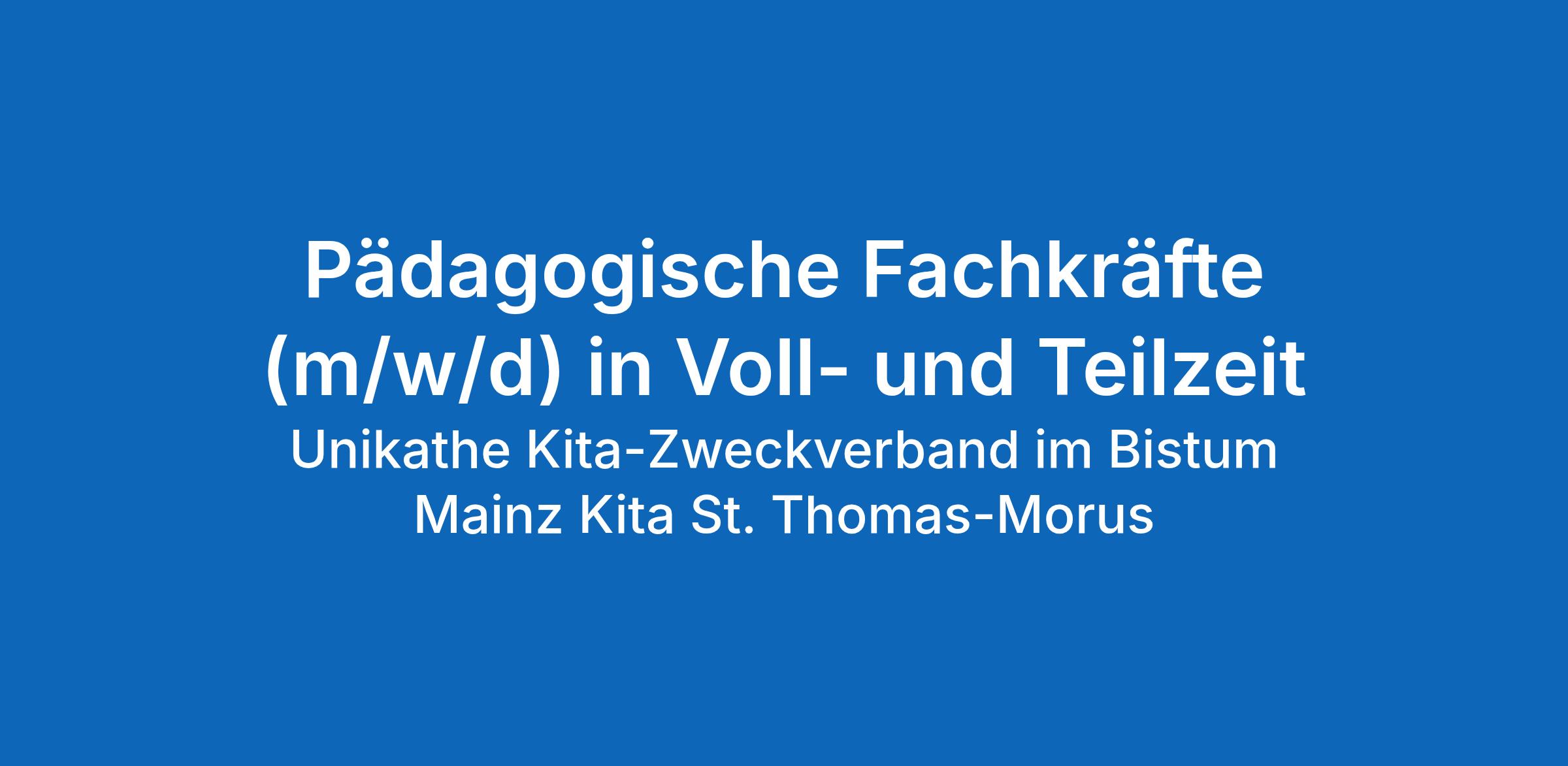 Der katholische Kita-Träger Unikathe sucht zum nächstmöglichen Zeitpunkt in Obertshausen für seine Kindertagesstätte St. Thomas-Morus