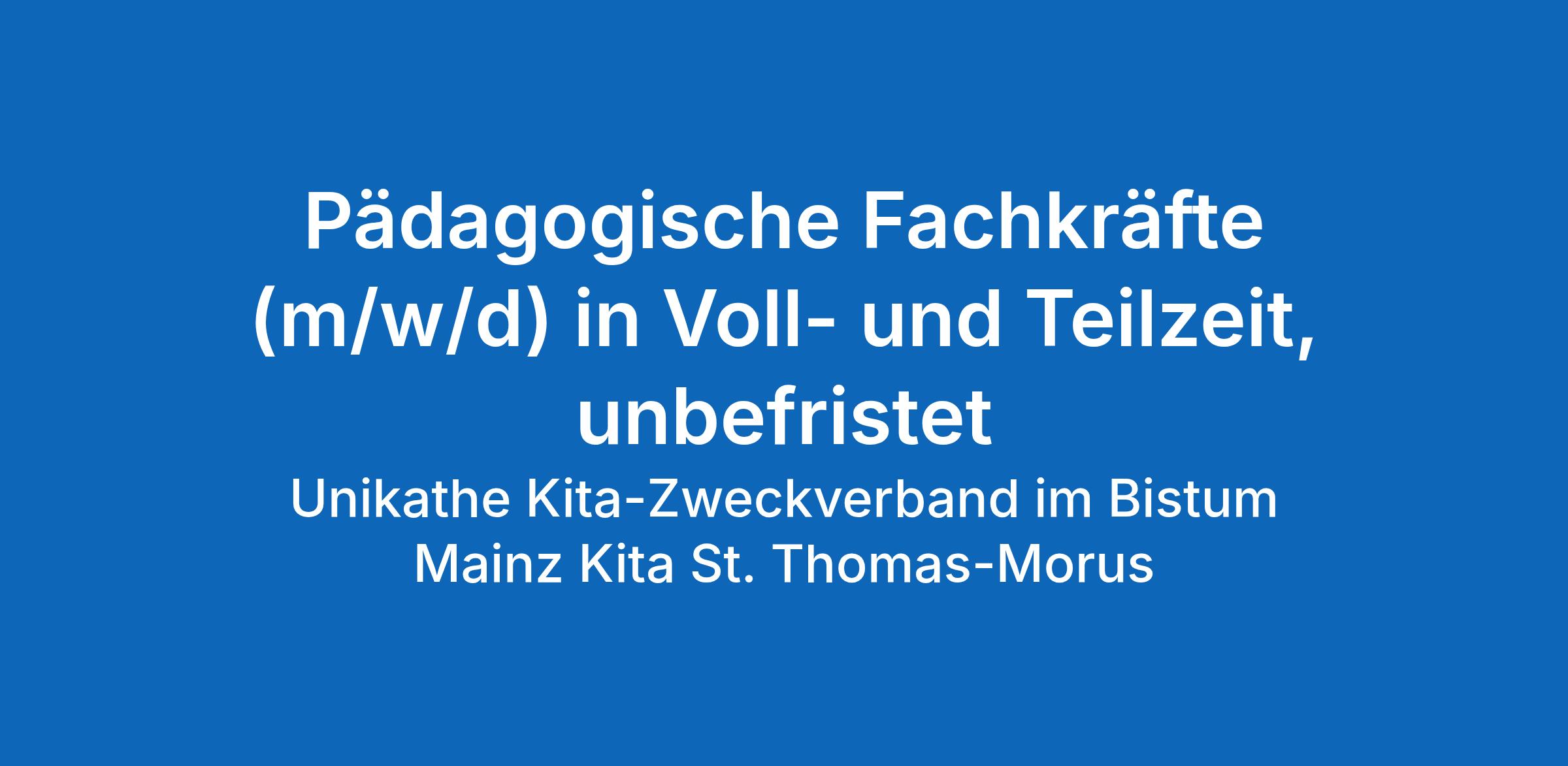 Der katholische Kita-Träger Unikathe sucht zum nächstmöglichen Zeitpunkt in Obertshausen für seine Kindertagesstätte St. Thomas-Morus