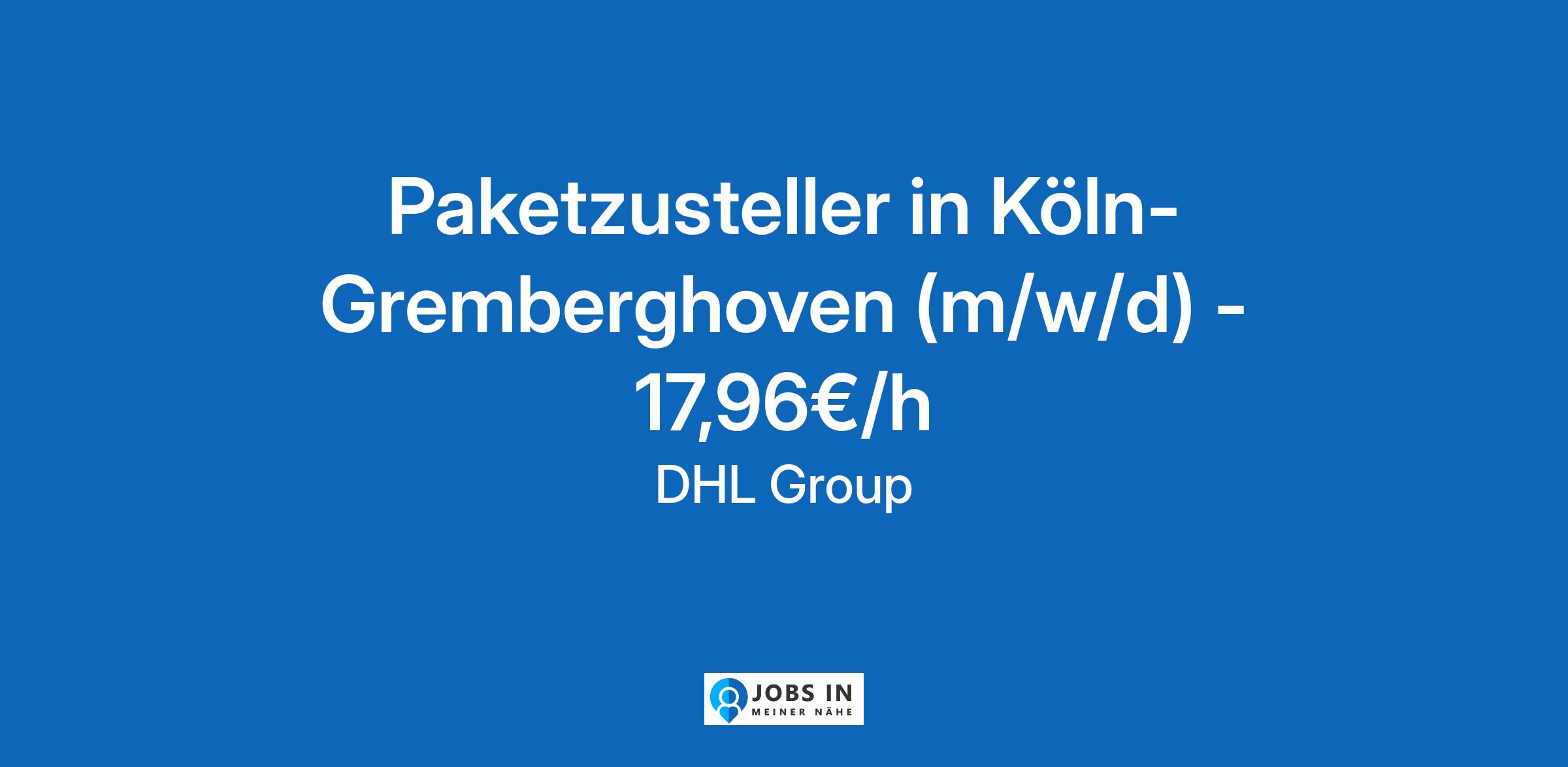 Paketzusteller in Köln-Gremberghoven (m/w/d) - 17,96€/h
