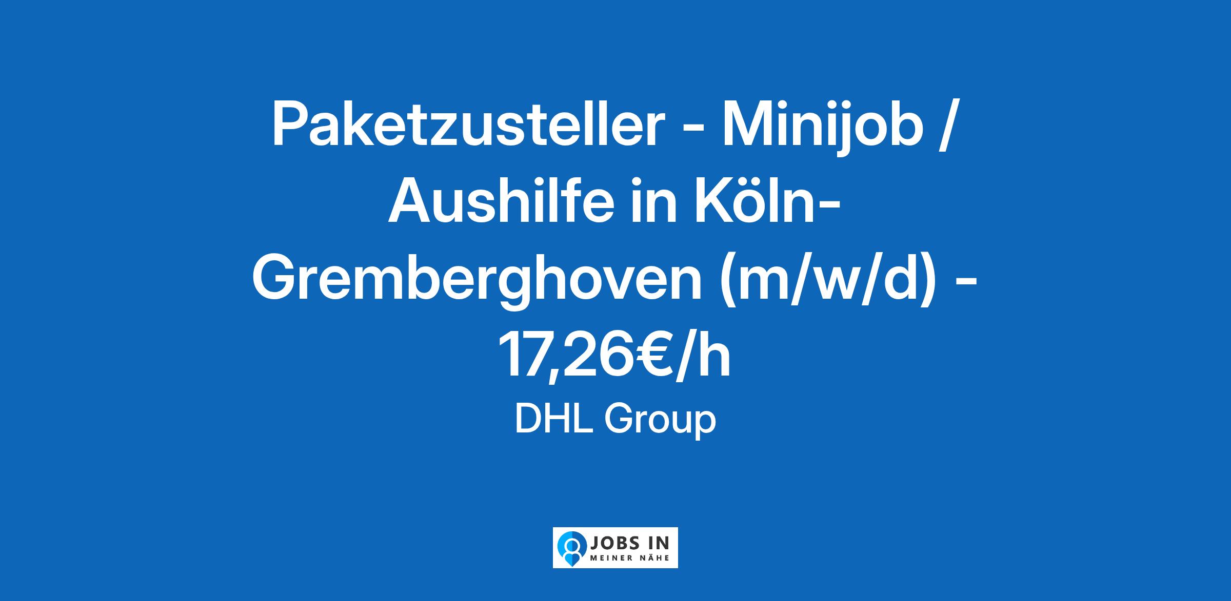 Paketzusteller – Minijob / Aushilfe in Köln-Gremberghoven (m/w/d) - 17,26€/h