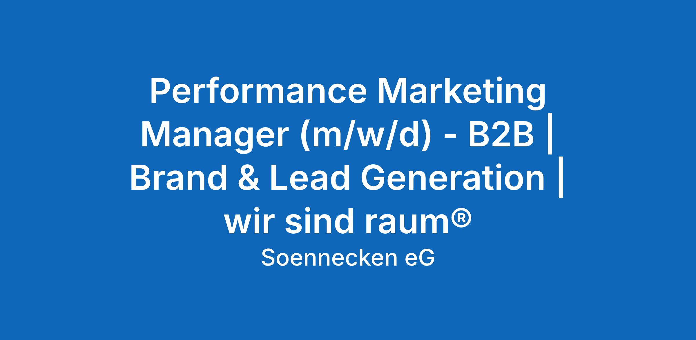 Performance Marketing Manager (m/w/d) - B2B | Brand & Lead Generation | wir sind raum®