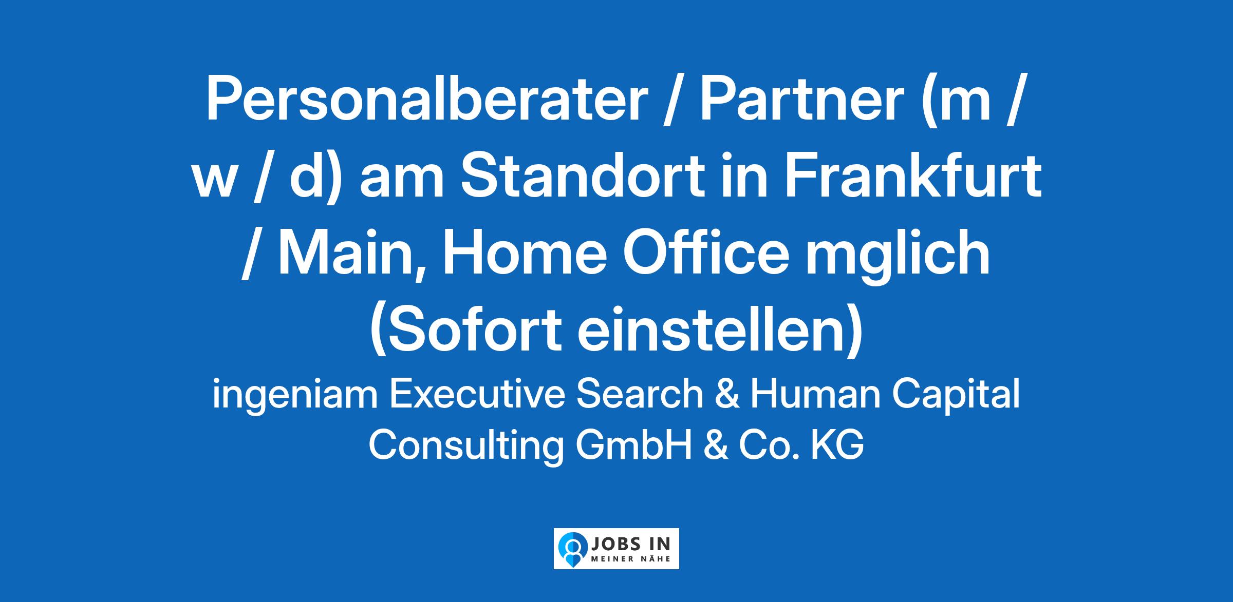 ingeniam ist eine in 2002 gegrndete, national und international agierende Personalberatung mit Fokus auf Executive Search. Seit 2010 sind wir Teil von IIC Partners, einer der weltweit grten Organisationen unabhngiger Executive Search Unternehmen. Als Mitglied im AESC stehen wir zudem fr hohe Qualitts- und Ethikstandards. Da wir weiter wachsen wollen, suchen wir zum nchstmglichen Zeitpunkt eine / n Personalberater / Partner (m / w / d) am Standort in Frankfurt / Main, Home Office mglich