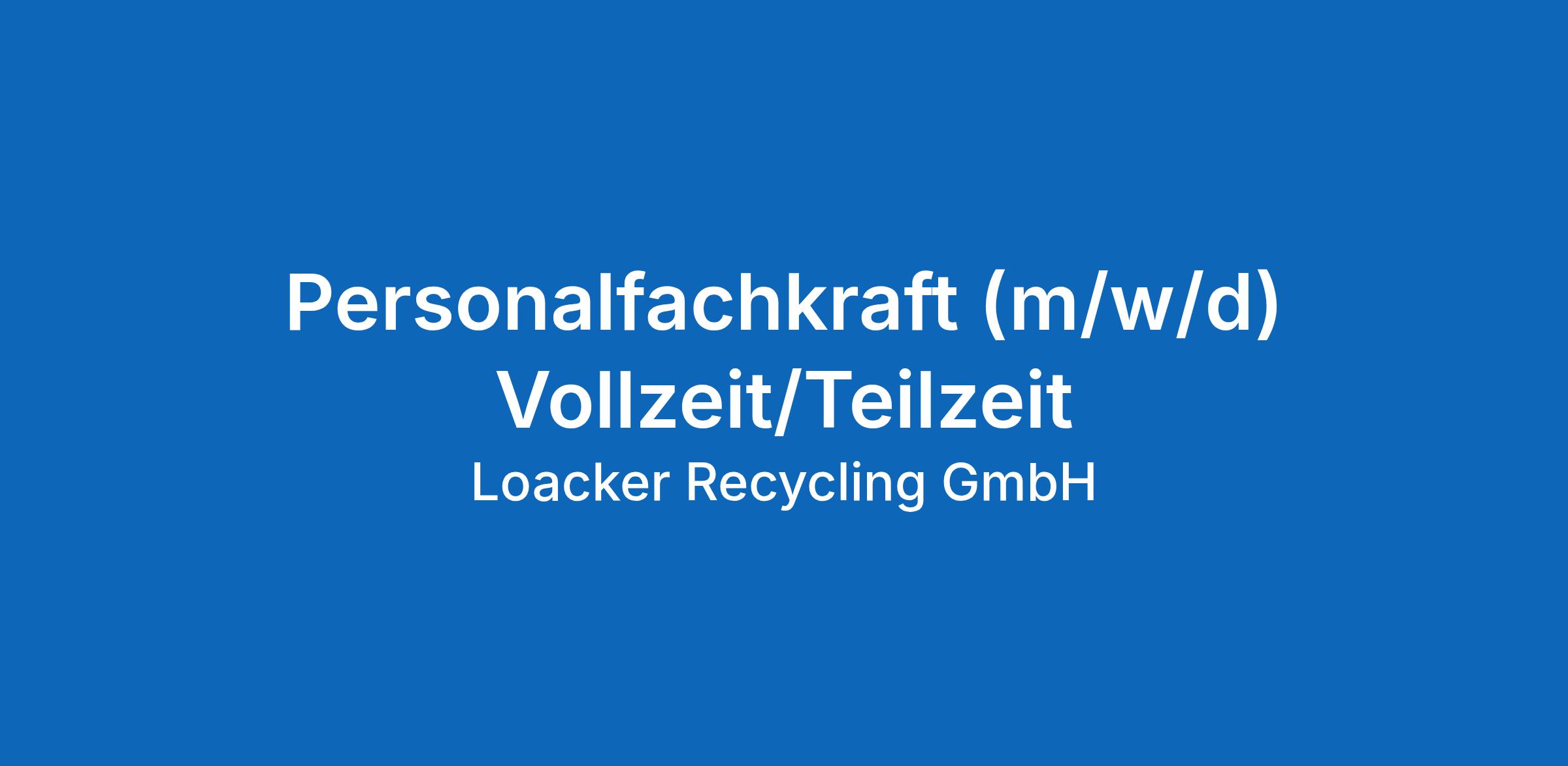 Beim Wertstoff-Recycling-Spezialisten Loacker steht die Zukunft im Mittelpunkt – auch die unserer Mitarbeiter*innen. Wir verstärken unseren HR-Bereich und suchen am Standort Wonfurt eine empathische, zahlenaffine Personalfachkraft für Deutschland in Voll- oder Teilzeit. In Teamarbeit rechnen wir rund 1.200 Mitarbeiter*innen in Deutschland und in Vertretung Österreich ab.