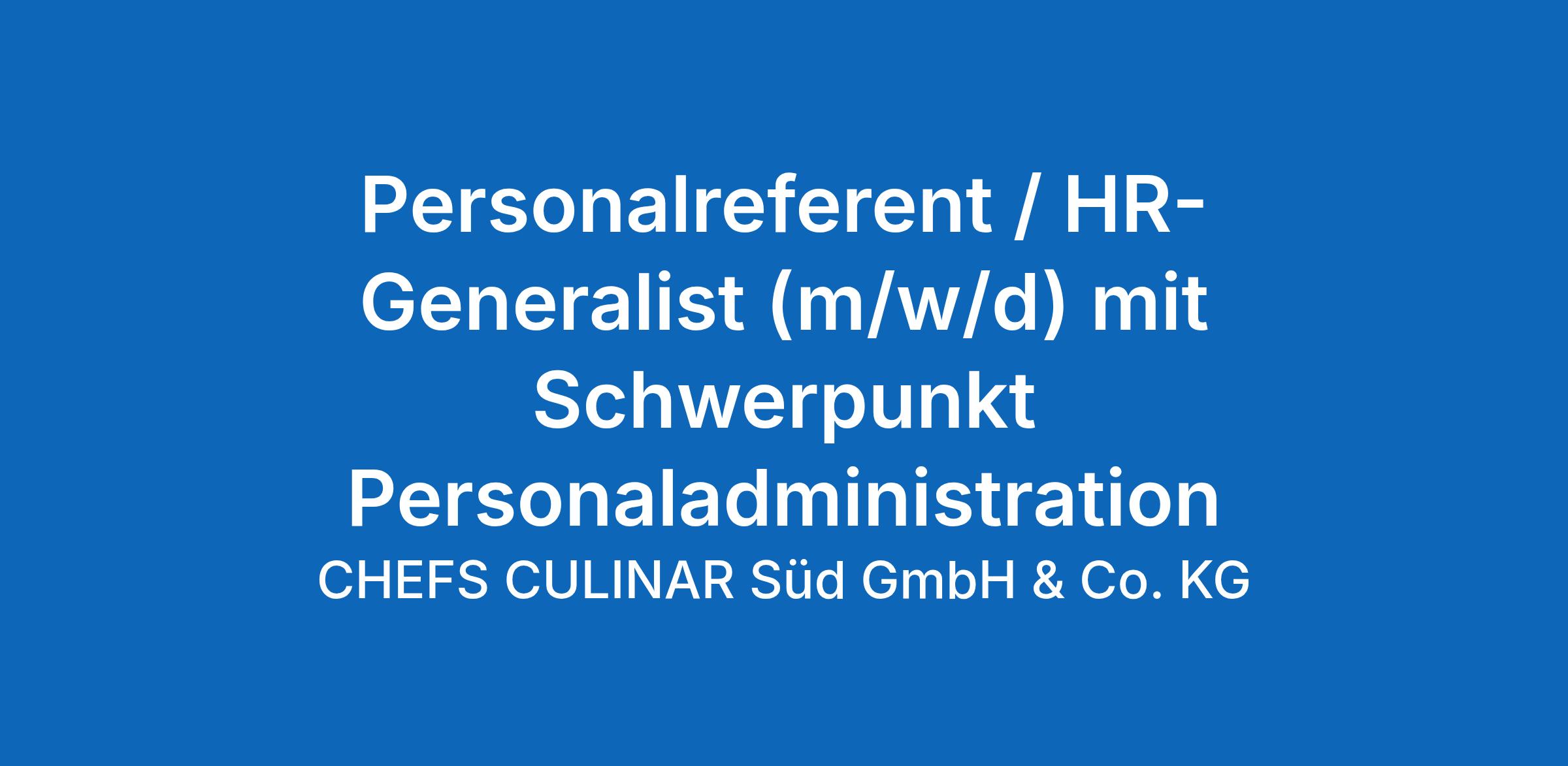 Personalreferent / HR-Generalist (m/w/d) mit Schwerpunkt Personaladministration