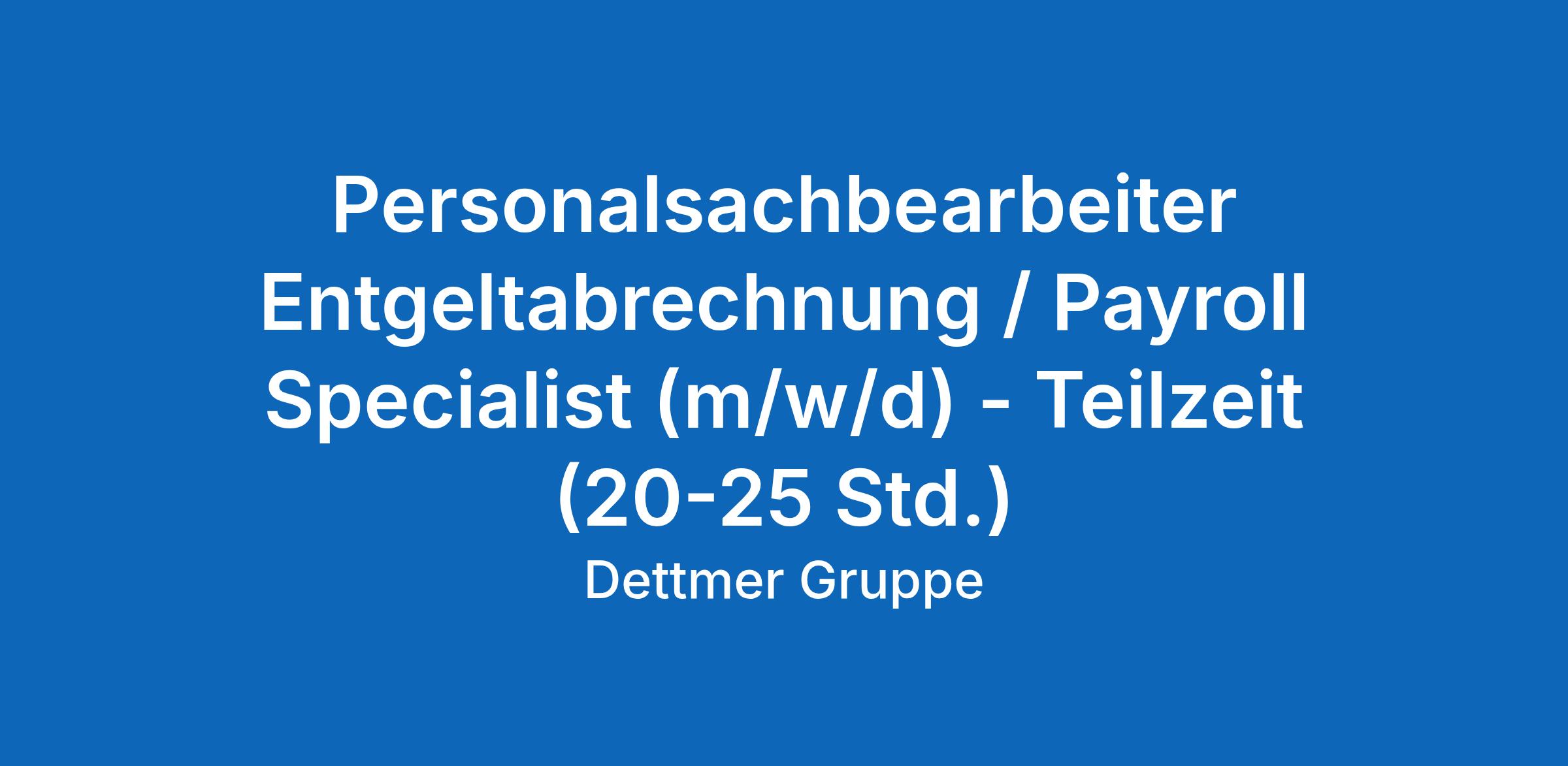 Personalsachbearbeiter Entgeltabrechnung / Payroll Specialist (m/w/d) – Teilzeit (20-25 Std.)