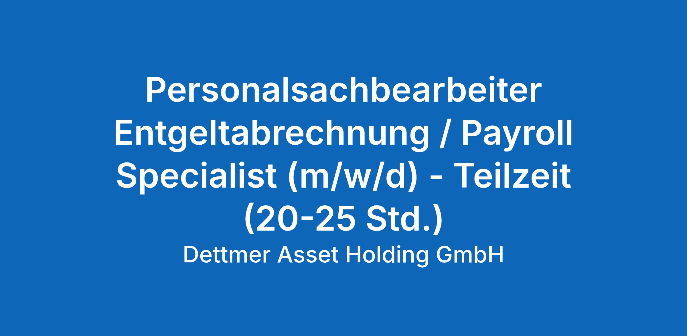 Personalsachbearbeiter Entgeltabrechnung / Payroll Specialist (m/w/d) – Teilzeit (20–25 Std.)