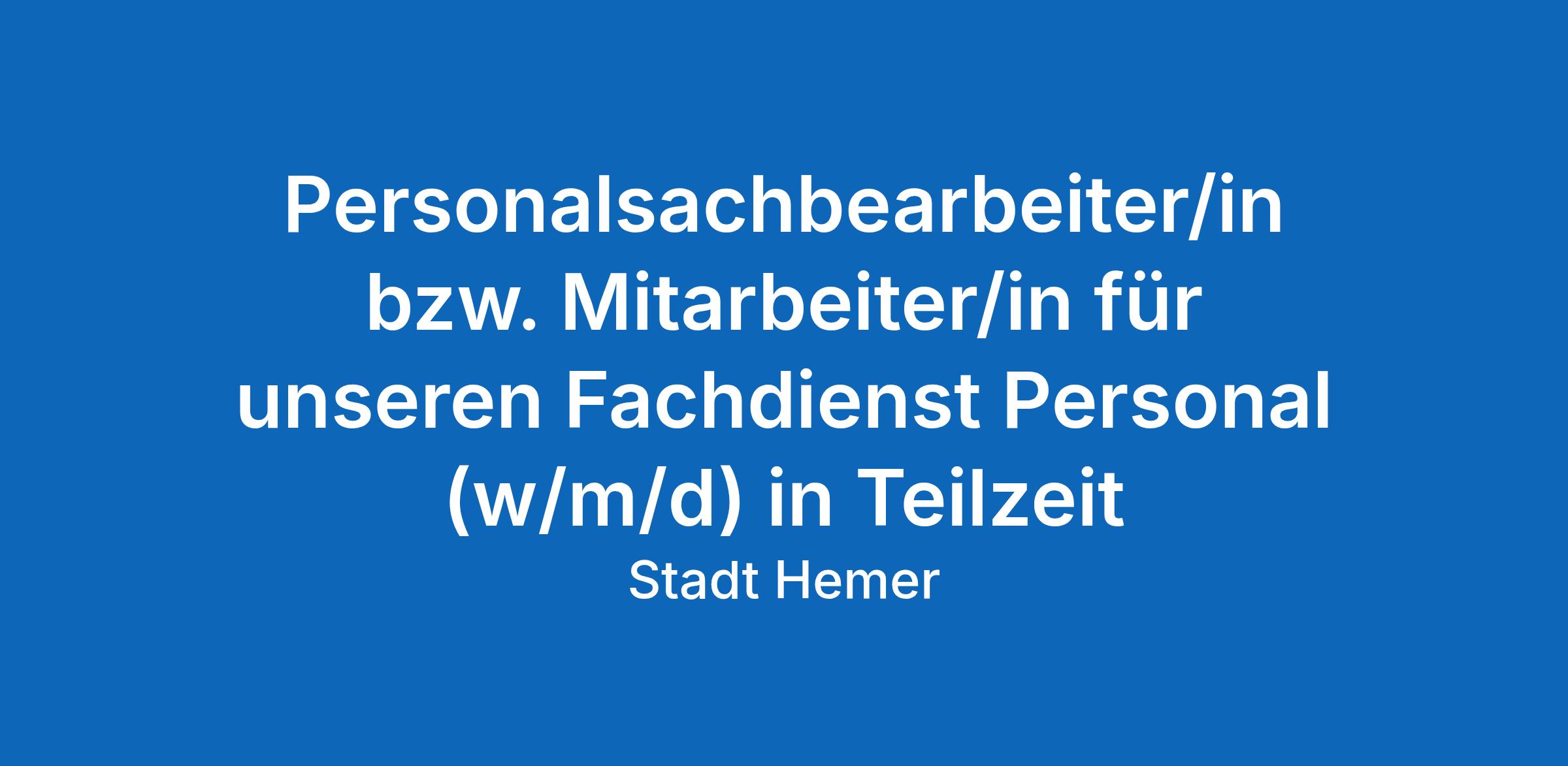 Personalsachbearbeiter/in bzw. Mitarbeiter/in für unseren Fachdienst Personal (w/m/d)
