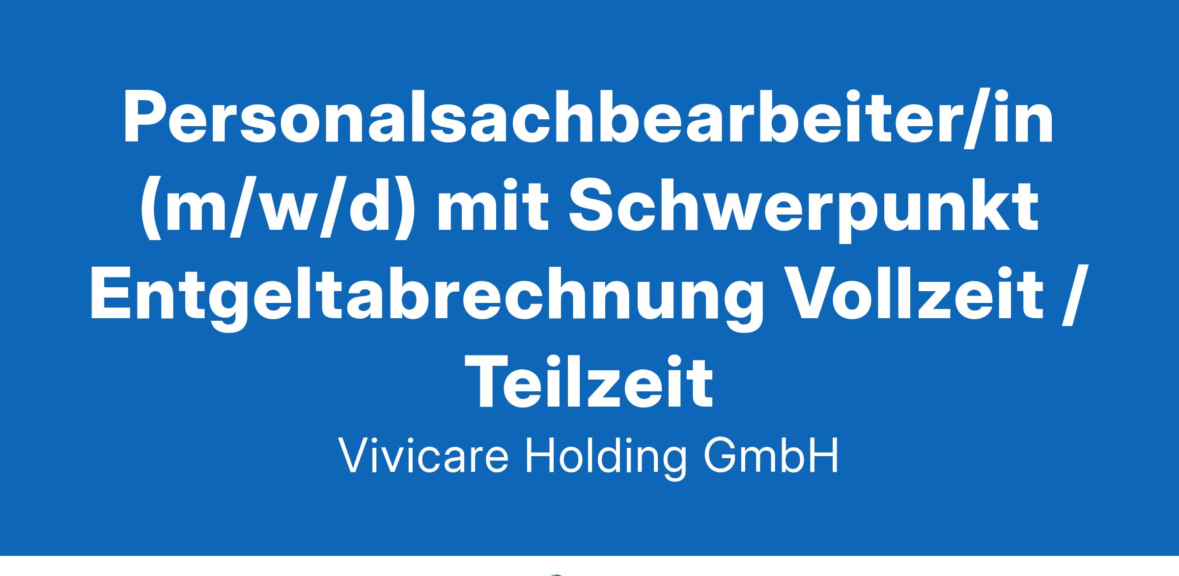 Personalsachbearbeiter/in (m/w/d) mit Schwerpunkt Entgeltabrechnung We are Die Vivicare-Holding ist zuständig für alle administrativen Aufgaben mehrerer Pflegedienste und Einrichtungen im Gesundheitswesen mit verschiedenen Tätigkeitsschwerpunkten. Wir suchen für unsere Personalabteilung eine/e Personalsachbearbeiter/in mit Schwerpunkt Entgeltabrechnung in Vollzeit oder Teilzeit (mindestens 75%) am Standort Neufahrn bei Freising. „Du-Kultur”, weil uns das WIR wichtig ist Aufstiegsmöglichkeiten innerhalb der Unternehmensgruppe Kostenfreies Mineralwasser, Tee und zahlreiche italienische Kaffeespezialitäten Interne und externe Weiterbildungsmöglichkeiten Corporate Benefits: Vergünstigungen exklusiv für VIVISOL Mitarbeiter*innen Kostenfreies Parken Prämie für geworbene Mitarbeiter*innen Zuschuss zur betrieblichen Altersvorsorge Chancegleichheit & Diversität zusätzlicher Arbeitgeberzuschuss für Bike-Leasing We want Abgeschlossene Ausbildung oder Studium mit kaufmännischem Schwerpunkt und erste Berufserfahrung im Lohn- und Gehaltsabrechnungsbereich sowie dem weiteren HR-Umfeld wünschenswert Gute MS-Office Kenntnisse Strukturierte und mitarbeiterorientierte Arbeitsweise sowie Kommunikationsstärke und Organisationstalent Selbstständigkeit, Sorgfalt und Begeisterung für Personalthemen Diskretion und absolute Vertraulichkeit im Umgang mit sensiblen Daten Your job Durchführung der vorbereitenden Lohnabrechnung inklusive Kontrolle und Nachbearbeitung für einen definierten Mitarbeiterbereich Betreuung dieser Mitarbeiter in allen Personalbelangen mit Erstellen von Verträgen, Zeugnissen, Bescheinigungen etc. Erfassung und Pflege der Personalstammdaten Korrespondenz mit Sozialversicherungsträgern, Krankenkassen und Behörden Vertrauensvoller Ansprechpartner für die Mitarbeiter bei sozialversicherungs-, steuerrechtlichen und abrechnungsrelevanten Fragestellungen Betreuung des On- und Offboardingprozesses sowie des Bewerbermanagements STARTE MIT UNS IN DIE ZUKUNFT Senden deine Bewerbung per Mail an bewerbung@VIVICARE.de Noch Fragen? Du erreichst uns telefonisch unter 08165 6094566 WIR FREUEN UNS AUF DEINE BEWERBUNG! VIVICARE Holding GmbH ? Werner-von-Siemens-Straße 1 ? 85375 Neufahrn ? Tel. +49 (0)8165 60945-66 ? info@vivicare.de