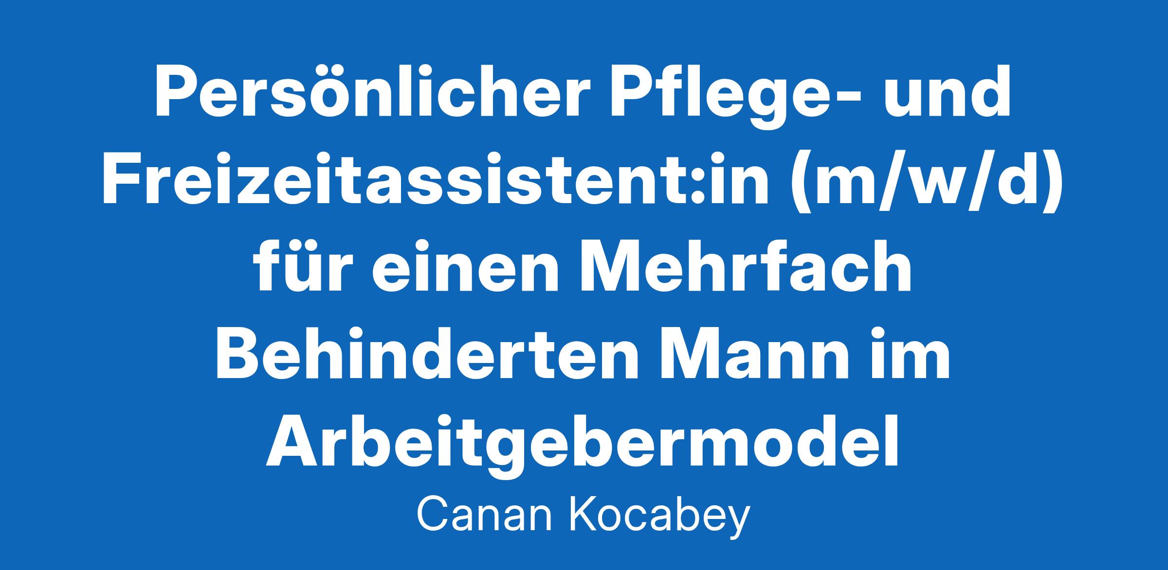 Hallo und herzlich willkommen! Ich bin Canan, 47 Jahre alt, und freue mich sehr, dass du auf meine Stellenanzeige gestoßen bist. Um meinen Alltag noch bunter und reibungsloser zu gestalten, suche ich ab dem 01.01.2025 eine/n motivierte/n Persönliche/n Assistent/in, die/der Teil meines tollen Teams wird.Deine Aufgaben: Pflegerische Unterstützung: Hilfe beim Waschen, An- und Auskleiden, Toilettengängen und Nahrungsanreichung Hauswirtschaftliche Tätigkeiten: Einkaufen, Kochen, Putzen und Wäschepflege Freizeitbegleitung: Unternehmungen wie Essen gehen, Konzert- oder Veranstaltungsbesuche Das bringst du mit: Mindestalter: 25 Jahre (wegen der Nutzung meines Autos). Führerschein (Klasse B): Fahrpraxis wäre klasse! Motivation und Belastbarkeit: Du packst gerne mit und bist flexibel einsetzbar. Teamfähigkeit: Ein harmonisches Miteinander ist uns wichtig! Zuverlässigkeit: Pünktlichkeit, Diskretion und ein gepflegtes Auftreten sind selbstverständlich. Sprachkenntnisse: Gute Deutschkenntnisse in Wort und Schrift. Computerkenntnisse: Ein Plus, aber kein Muss. Das bieten wir Dir: Einstieg ab sofort in Teilzeit ( 152 Std./Monat ) oder Vollzeit ( 160 Std./Monat ) Attraktiver Stundenlohn von 15,74 €/Std., dazu Zuschläge für Sonntags-, Feiertags- und Nachtarbeit Arbeitsort: Übach-Palenberg (52531), Nordrhein-Westfalen Flexible Schichtmodelle: 16-Stunden-Schicht: 09:00 – 01:00 Uhr 8-Stunden-Schichten: Früh (09:00 – 17:00 Uhr) oder Spät (17:00 – 01:00 Uhr) KontaktZu mir: Ich heiße Canan und sitze aufgrund einer Spastik im E-Rollstuhl. Meine Bewegungen sind eingeschränkt, daher brauche ich bei vielen Dingen Unterstützung. Mein Team aus fünf herzlichen Assistenten begleitet mich rund um die Uhr. In meiner Freizeit liebe ich es, im Internet zu surfen, mich weiterzubilden, Freunde zu treffen und Ausflüge zu machen – sei es ins Restaurant, zu Konzerten oder Veranstaltungen. Genau bei diesen Aktivitäten wirst du an meiner Seite sein! Interesse? Ich freue mich riesig darauf, dich kennenzulernen! Melden Sie sich einfach per E-Mail oder Telefon: E-Mail: canankocabey@yahoo.de Telefon: 0157-54974398 (Herr Neumann, erreichbar von Mo–Fr, 10:00 – 18:00 Uhr, kein WhatsApp) Werde Teil meines Teams – ich freue mich auf dich! Bei Fragen stehen wir Dir gern zur Verfügung. Ansprechpartner Herr Neumann Kontaktdaten 0157-54974398 Anschrift: Rathausplatz 1 in 52531 Übach-Palenberg
