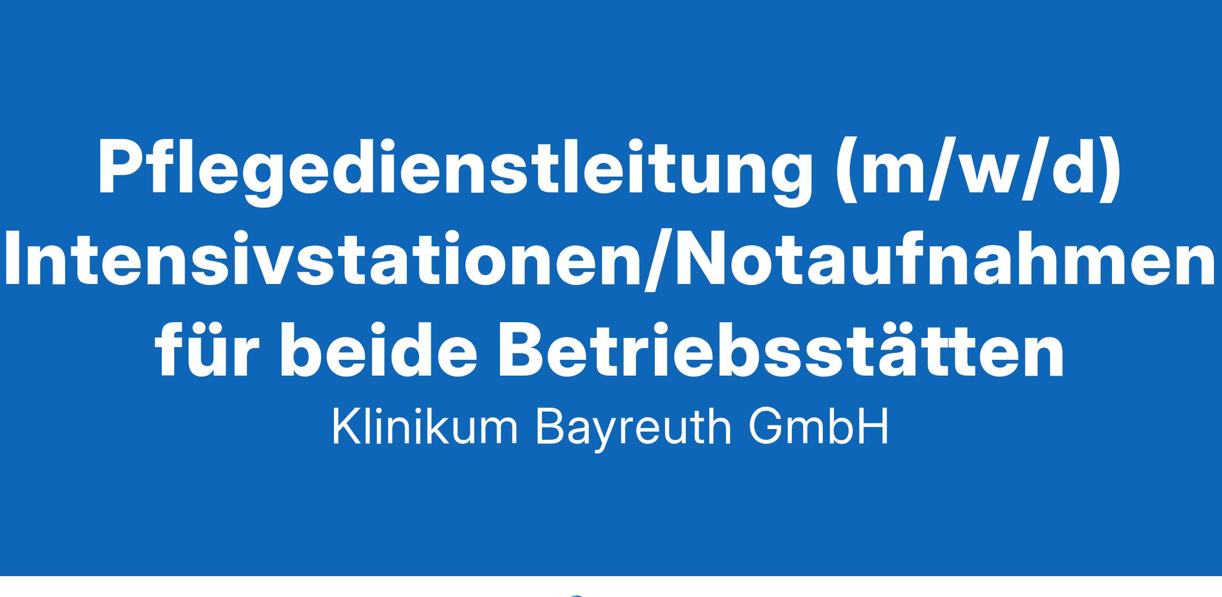 Die Klinikum Bayreuth GmbH erfüllt mit 28 Fachkliniken, 1.048 Betten und rund 3.500 Mitarbeitenden den Standard der Maximalversorgung und ist der führende Medizin-Dienstleister in Nordostoberfranken. Zudem ist die Klinikum Bayreuth GmbH mit ihren zwei Standorten in Bayreuth die überregional renommierte Anlaufstelle für Patientinnen und Patienten, die auf besonders hochwertige Versorgung Wert legen. Gemeinsam mit der Friedrich-Alexander-Universität Erlangen-Nürnberg, dem Universitätsklinikum Erlangen und der Universität Bayreuth steht die Klinikum Bayreuth GmbH für den Medizincampus Oberfranken. Hier absolvieren Medizin-Studierende den Klinischen Teil ihres Studiums. Damit bietet die Klinikum Bayreuth GmbH weit über die Region hinaus Diagnostik, Therapie, Forschung und Lehre auf universitärem Niveau und verbindet dies mit den Bedürfnissen und Anforderungen der Bevölkerung in Oberfranken nach einer umfassenden Gesundheitsversorgung. www.klinikum-bayreuth.deIhr ArbeitsbereichUns vertrauen pro Jahr mehr als 100.000 Patientinnen und Patienten. Wir decken nahezu das gesamte medizinische und pflegerische Spektrum ab - und das auf hohem Niveau. Dabei macht die Pflege den größten Anteil an Angestellten bei der Klinikum Bayreuth GmbH aus. Die Begleitung und Unterstützung unserer Patienten und Patientinnen sind besonders wichtig - fachliche wie menschlich. Aber vor allem: Wir fühlen uns den Menschen verpflichtet.Das sind Ihre AufgabenSie übernehmen die personelle und wirtschaftlich-organisatorische Führung des genannten Bereiches.