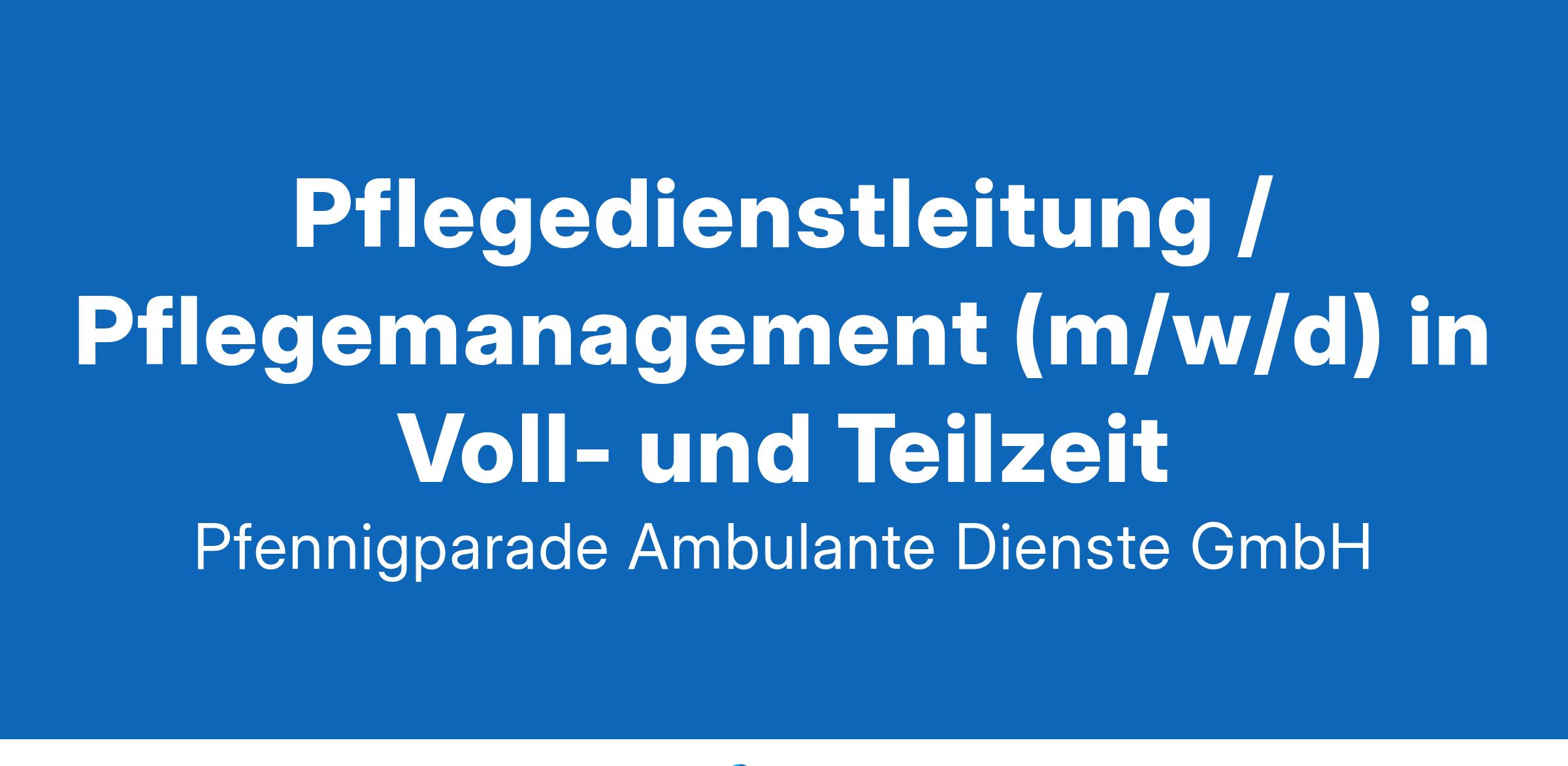 Wenn Sie Lust haben, Ihr Engagement und Ihre Fachkompetenz einzubringen sowie zu erweitern und wenn Sie mit Humor bei der Sache sind, freuen wir uns auf Ihre Bewerbung. Die Pfennigparade Ambulante Dienste GmbH ist der Ambulante Pflegedienst der Stiftung Pfennigparade. Mit unserer Unterstützung führen körperbehinderte Menschen in ihren eigenen vier Wänden ein selbstbestimmtes und eigenständiges Leben. Wir suchen zum nächstmöglichen Zeitpunkt eine Kollegin (m/w/d) für unser Leitungsteam. Bei uns haben Sie Zeit für Ihre Leitungsaufgaben und sind nicht im regulären Pflegedienst mit eingeplant. Pflegedienstleitung / Pflegemanagement (m/w/d) in Voll- und Teilzeit Ihre Aufgaben: Steuerung der kundenbezogenen Pflegeprozesse im Sinne unserer Philosophie und unserer Werte. Organisation der Betriebsabläufe und Ausführung administrativer Tätigkeiten. Sicherstellung der Einhaltung aller relevanten rechtlichen Bestimmungen und Vorgaben. Weiterentwicklung und Umsetzung von Qualitäts- und Pflegestandards. Mitarbeiterorientierte Personalführung und -planung. Wahrnehmung der Dienst- und Fachaufsicht. Personalentwicklung, Einarbeitung und Personalförderung. Teilnahme an Arbeitsgruppen und Projektarbeit. Unsere Anforderungen: Abgeschlossene Weiterbildung zur Pflegedienstleitung, oder eine vergleichbare Hochschulqualifikation. Berufserfahrung als verantwortliche Pflegefachkraft. Hohe pflegefachliche Kompetenz. Selbstständiges und lösungsorientiertes Arbeiten. Betriebswirtschaftliches Verständnis. Engagement, Motivation & Inspiration für Mitarbeiter*innen. Hohe soziale- und kommunikative Kompetenz. Was wir bieten: Leistungsgerechte Vergütung nach TVöD-VKA mit vielen Sonderleistungen wie z.B.
